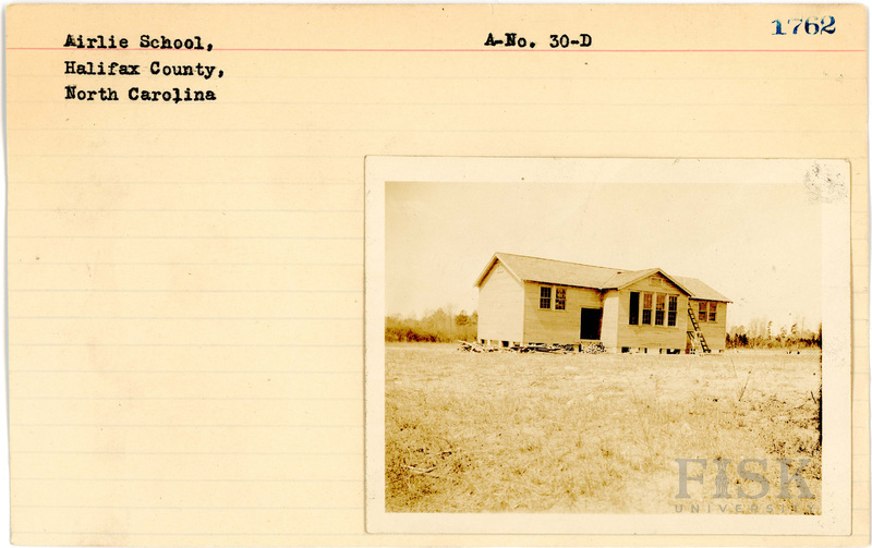 - Photo of Airlie School in Halifax County, North Carolina on the front of the school card; photo of pupils at Airlie School in Halifax County, North Carolina on the back of the card