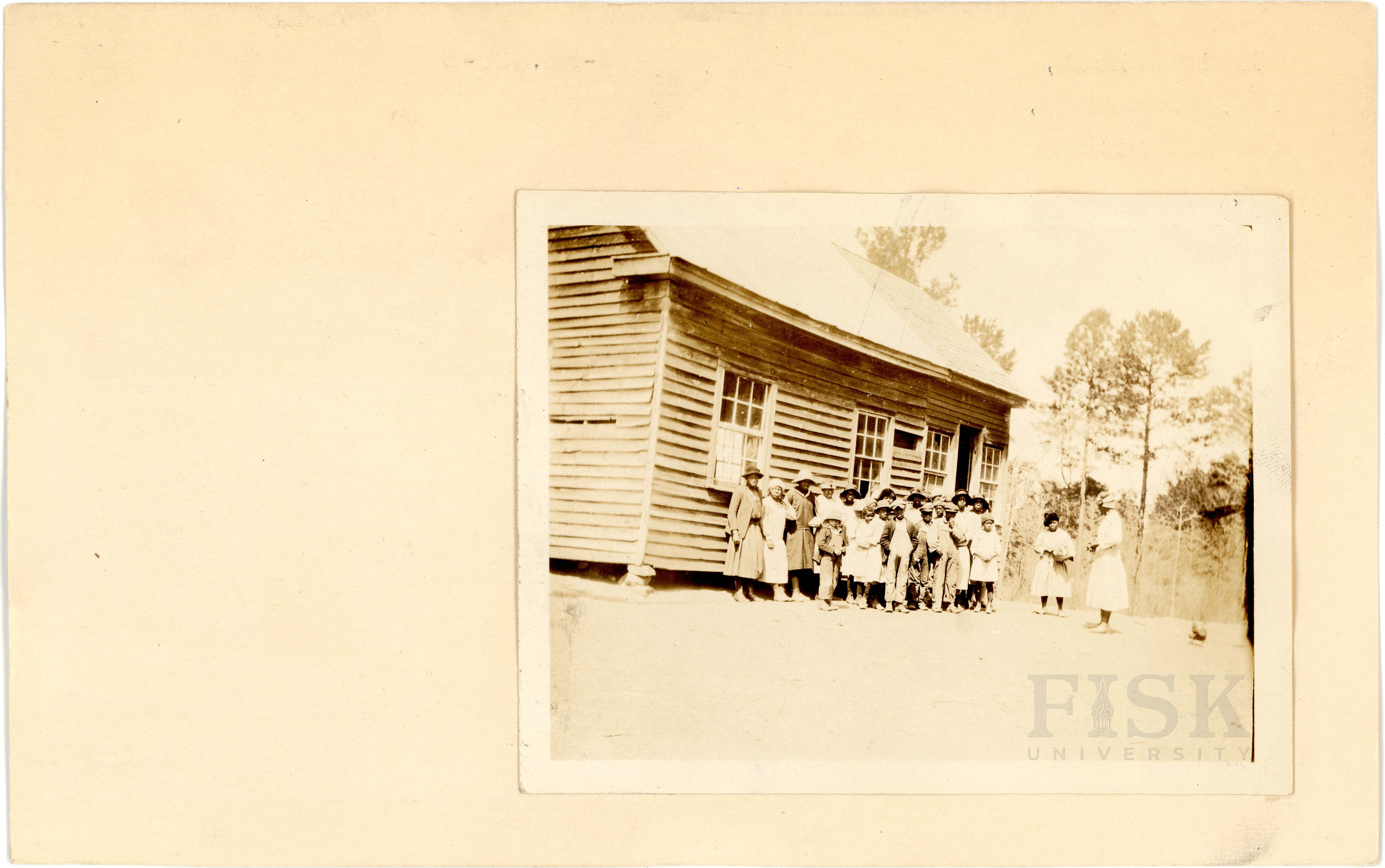 Photo of Airlie School in Halifax County, North Carolina on the front of the school card; photo of pupils at Airlie School in Halifax County, North Carolina on the back of the card
