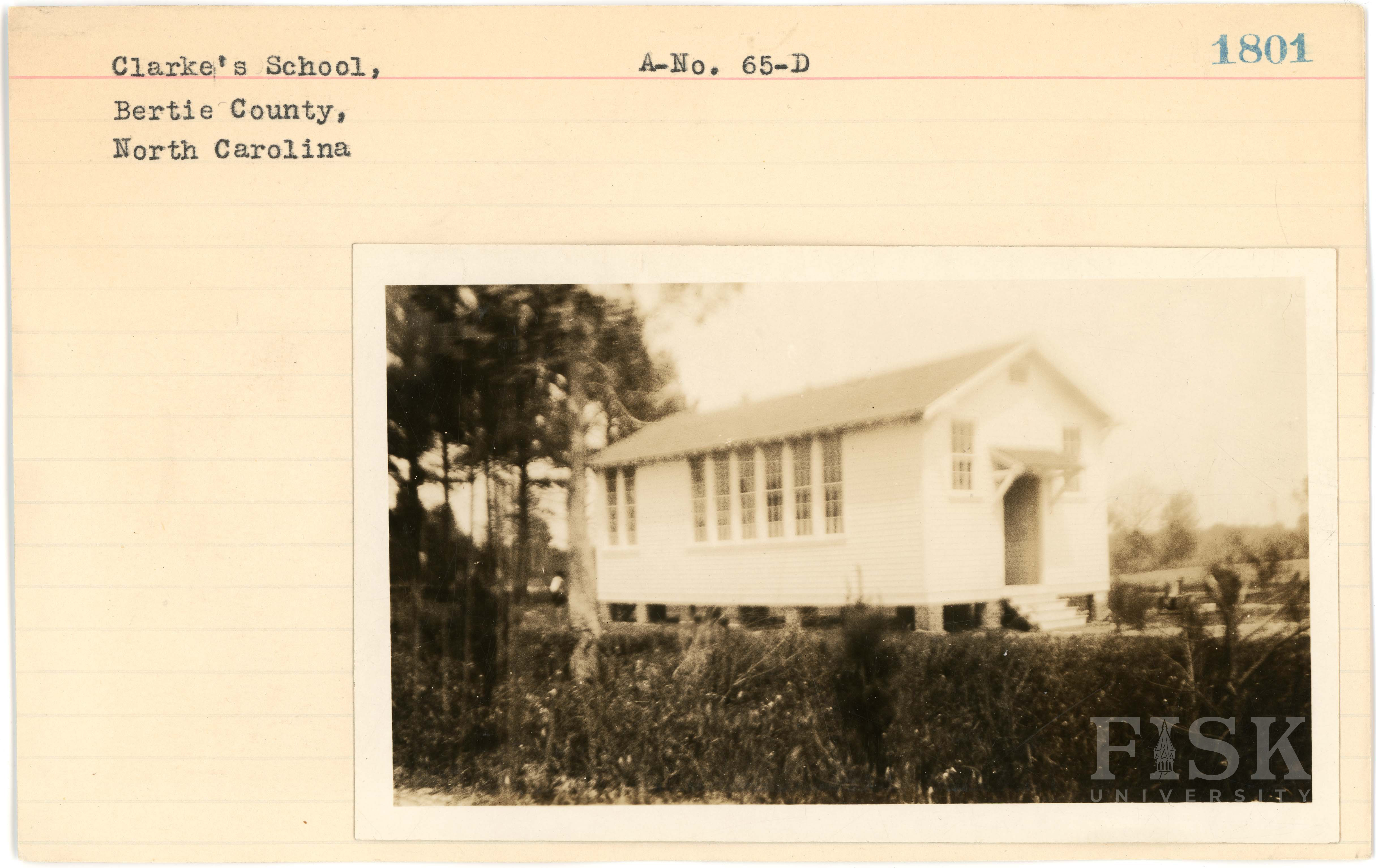 - Photo of Clarke's School in Bertie County, North Carolina