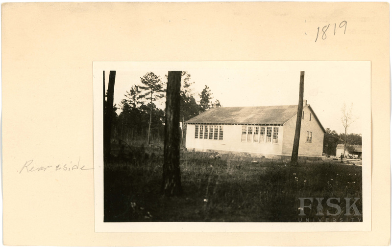 - Photo of Ebenezer School in Florence County, South Carolina with a note on the front of the school card that says, "Front"; a note on the back of the card says, "Rear & side"