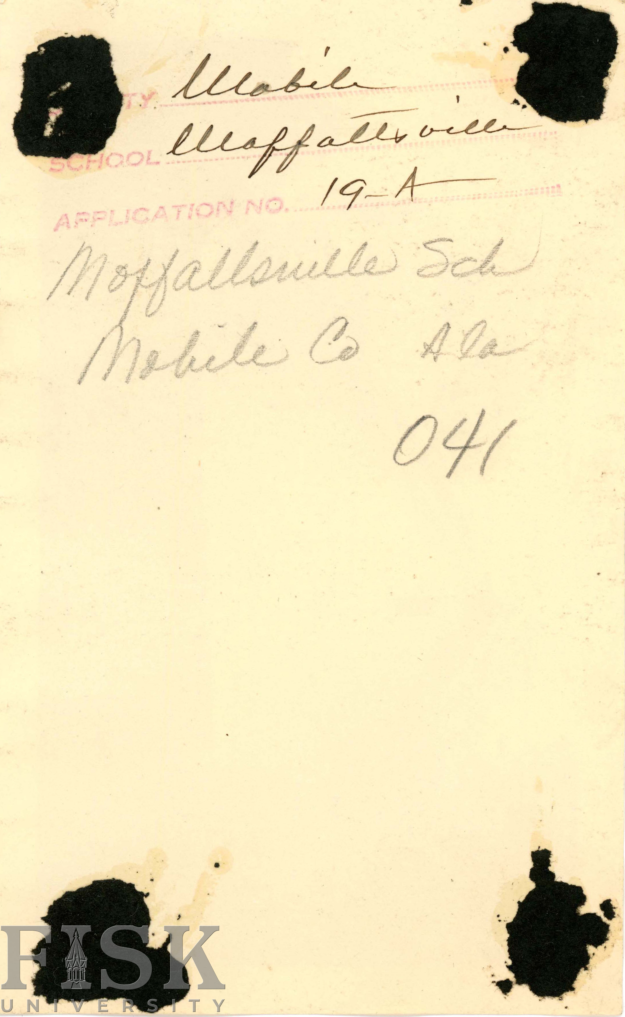 - Moffallsville School in Mobile County, Alabama