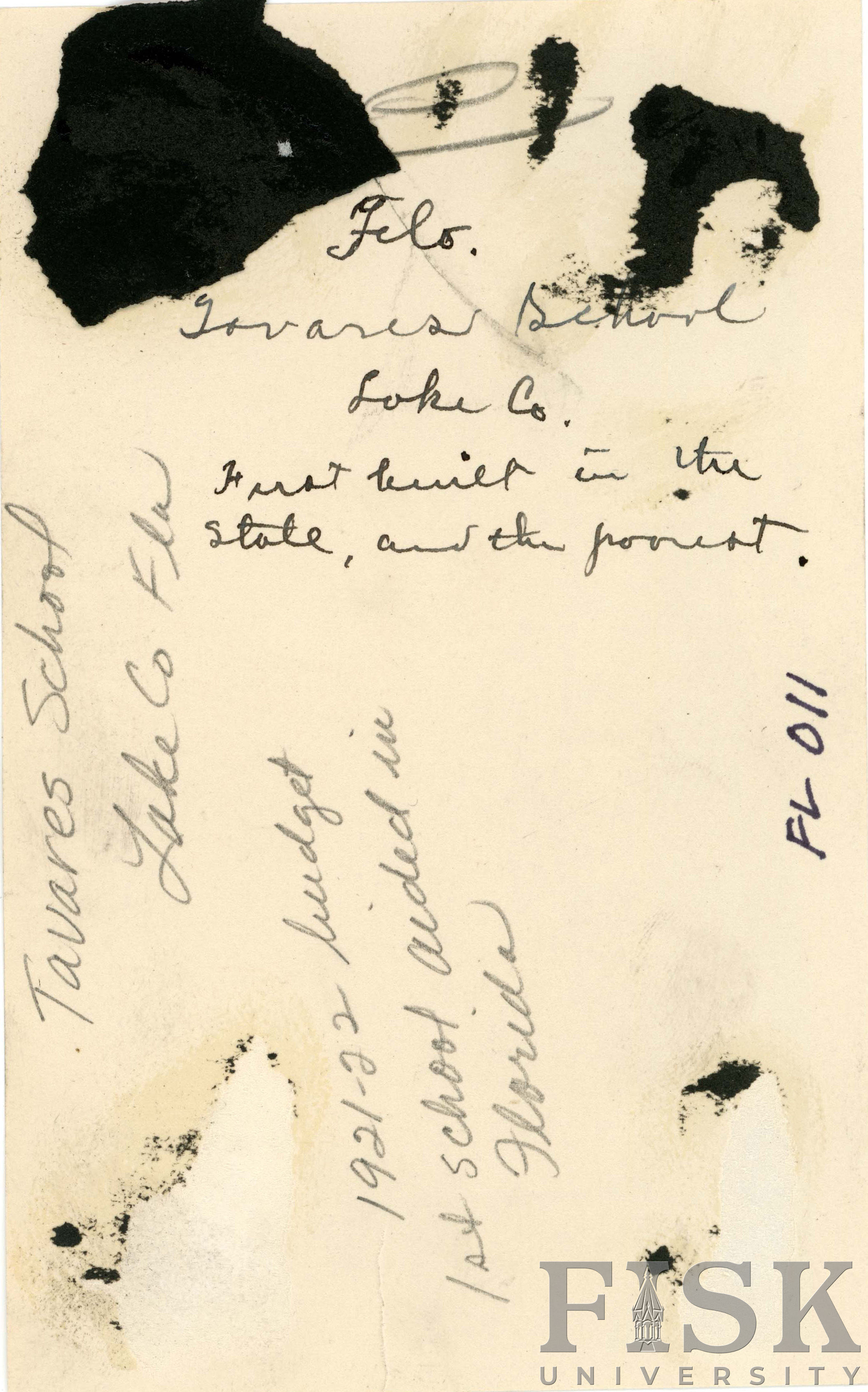 - Photos of Tavares School in Lake County, Florida. Date on the back of the card says, "1921-1922"