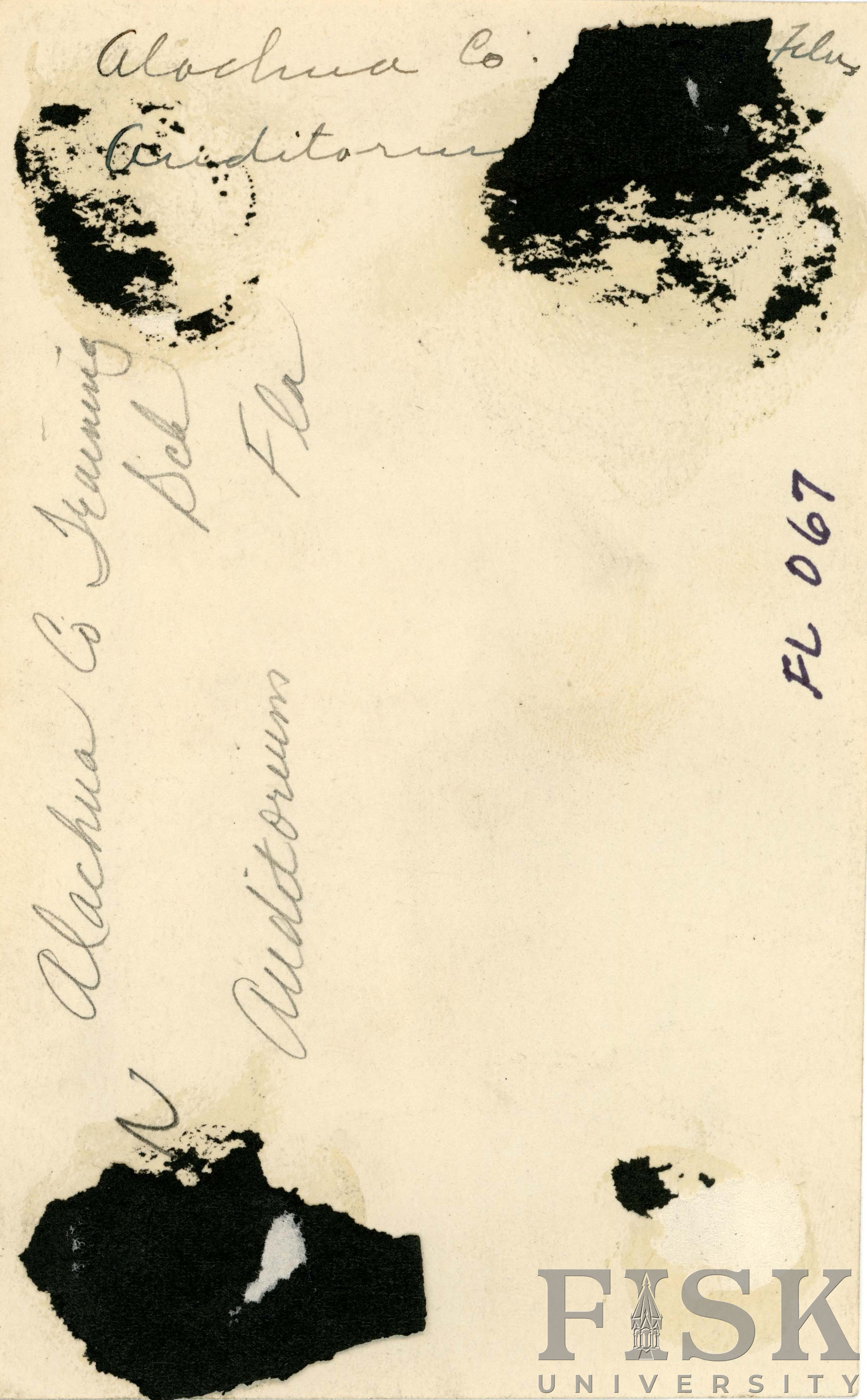 - Photos of the auditorium at the Alachua County Training School in Alachua County, Florida