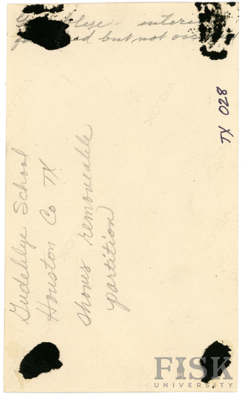 - Photo of the Gudelelye School in Houston County, Texas. There is an illegible note written on the back.