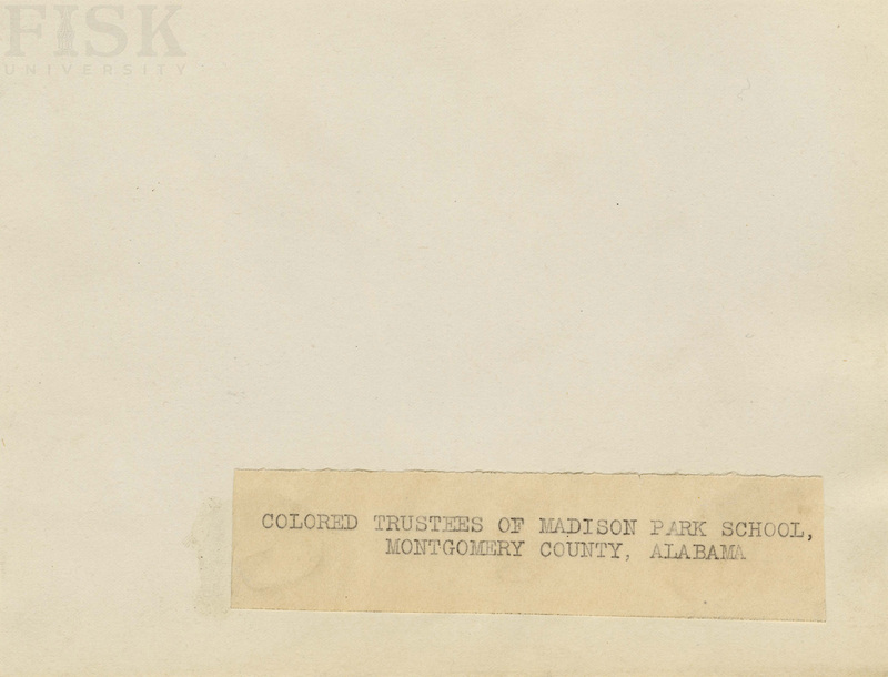 - Photo shows African American trustees outside of Madison Park School in Montgomery, Alabama with a note that says, "COLORED TRUSTEES OF MADISON PARK SCHOOL, MONTGOMERY COUNTY, ALABAMA"