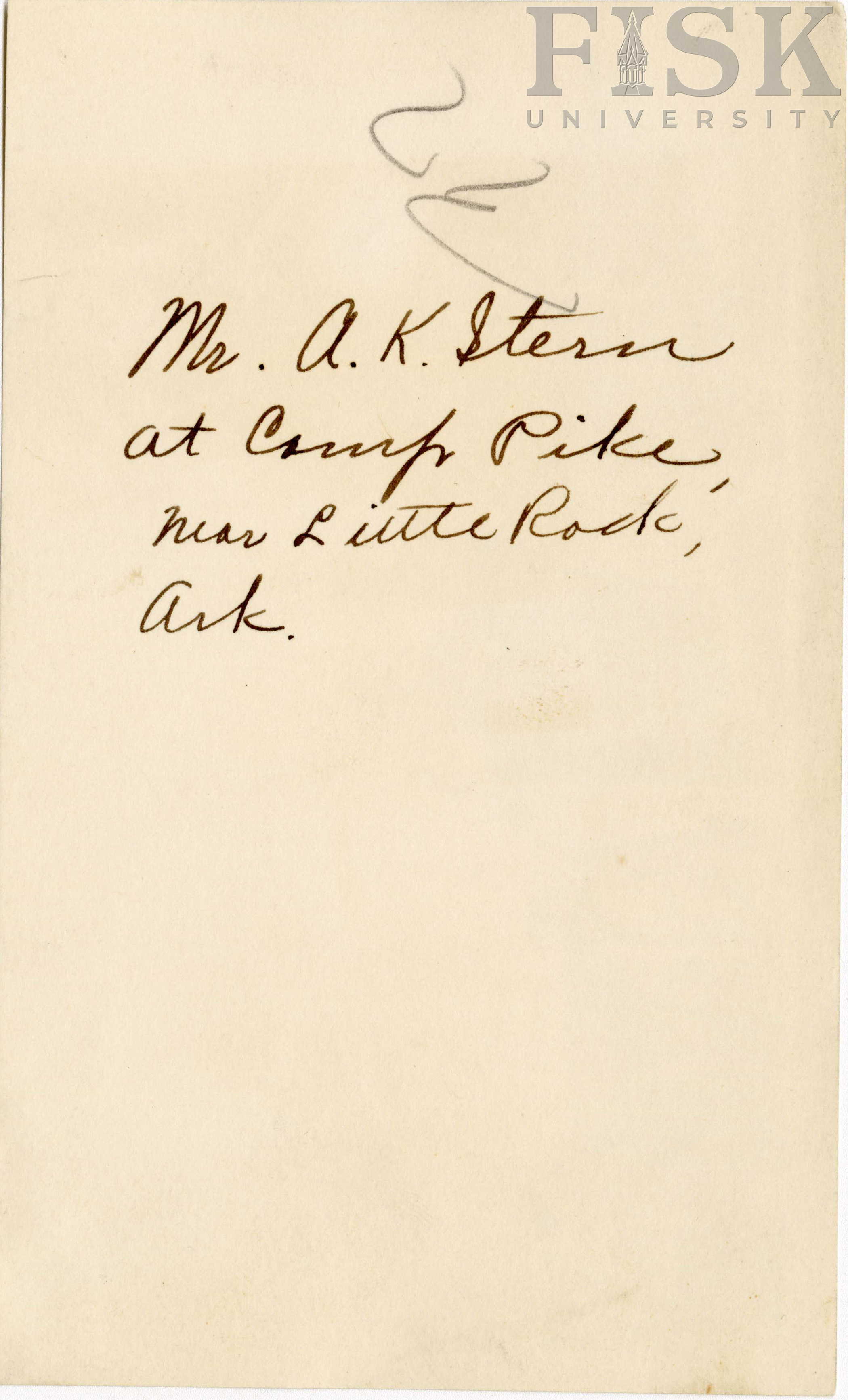 - Mr. Alfred K. Stern in Camp Pike, Little Rock County, Arkansas