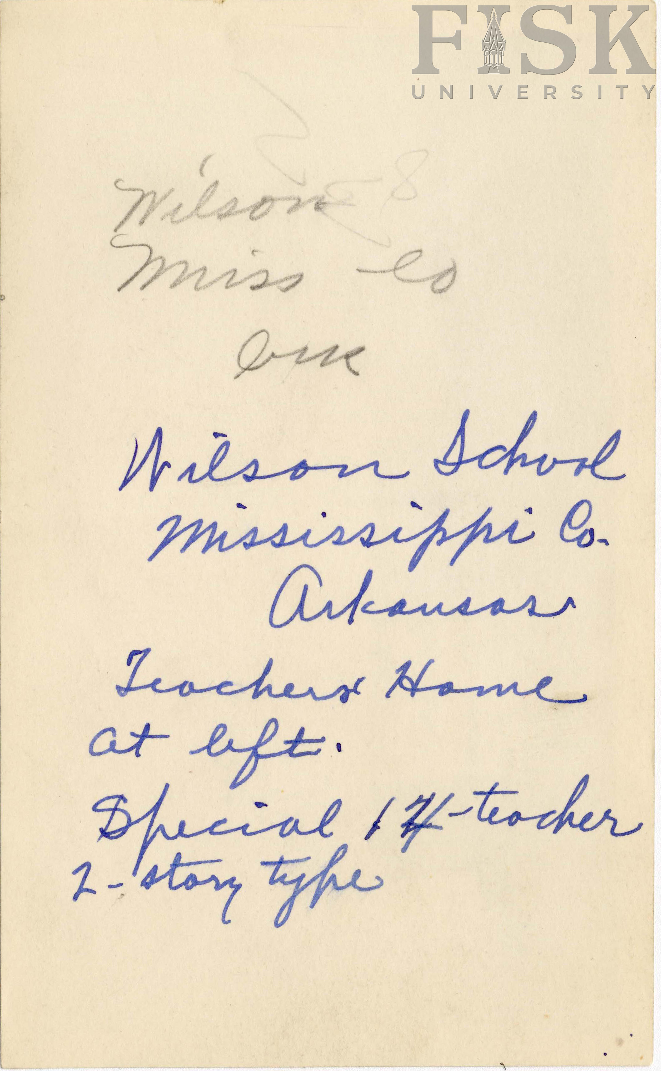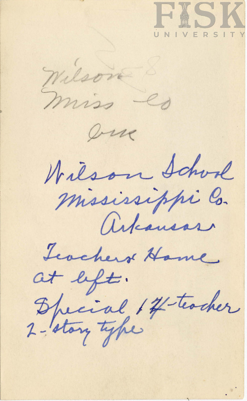 - Photo shows Wilson school in Mississippi, Arkansas with a note that says, "Wilson school Mississippi Co. Arkansas Teachers' Home at left. Special 14-teacher 2-story type"