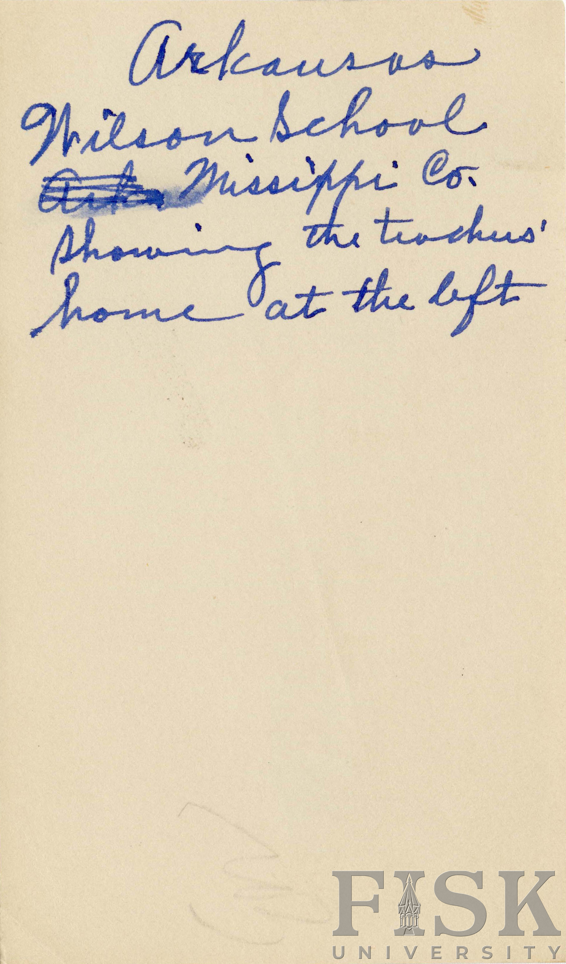 - Photo shows Wilson school and the teachers' home in Mississippi, Arkansas with a note that says, "Arkansas Wilson school Missippi Co. showing the teachers' home at the left"