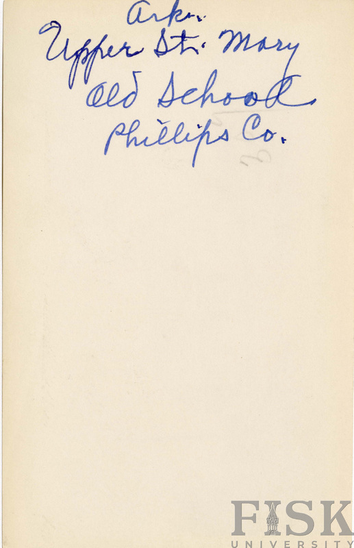 Photo shows a different view of an old Upper St. Mary S. school in Phillips, Arkansas. Description says, "ark. Upper St. Mary old school Phillips Co."