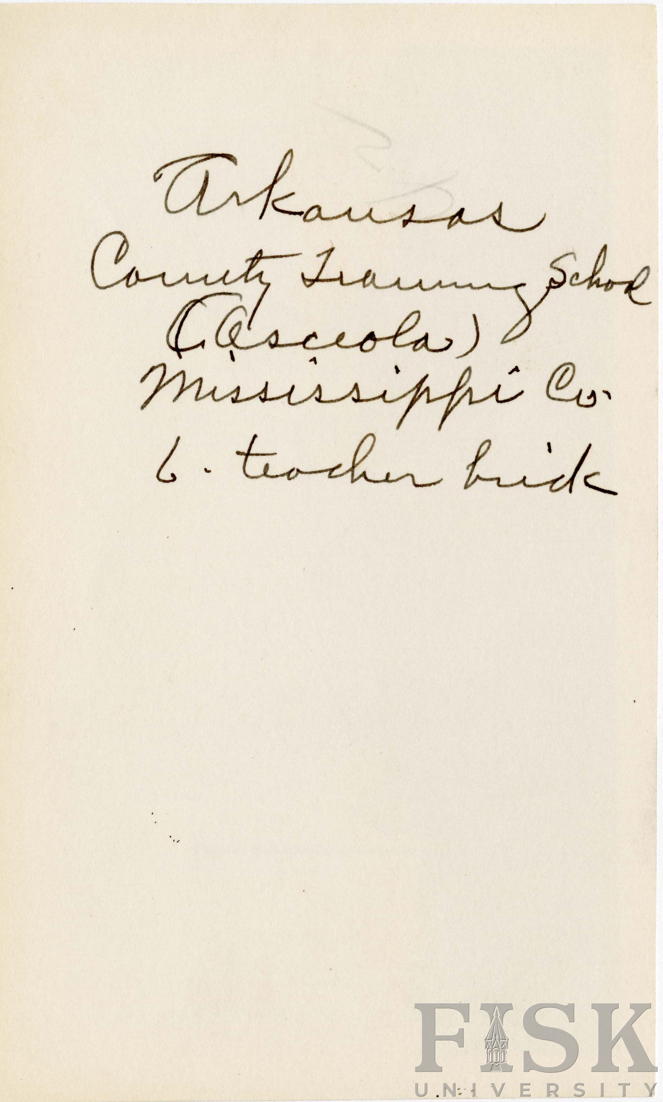 - Photo shows Osceola Training School in Mississippi, Arkansas with a note that says, "Arkansas County Training School (Osceola) Mississippi Co. 6-teacher brick"