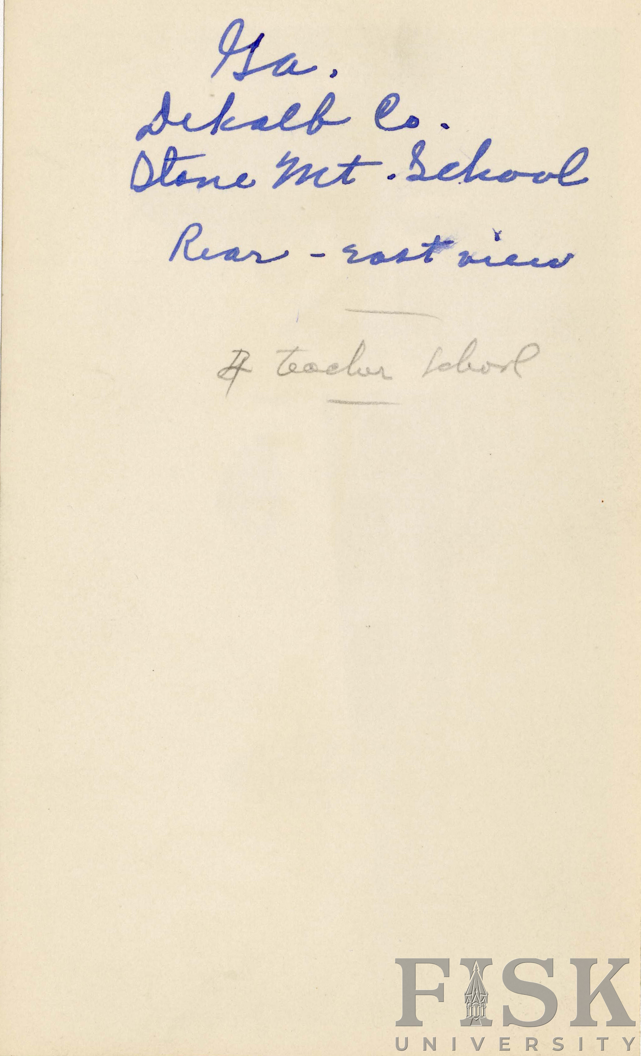 Photo shows the rear-east view of Stone Mountain school in Dekalb, Georgia.