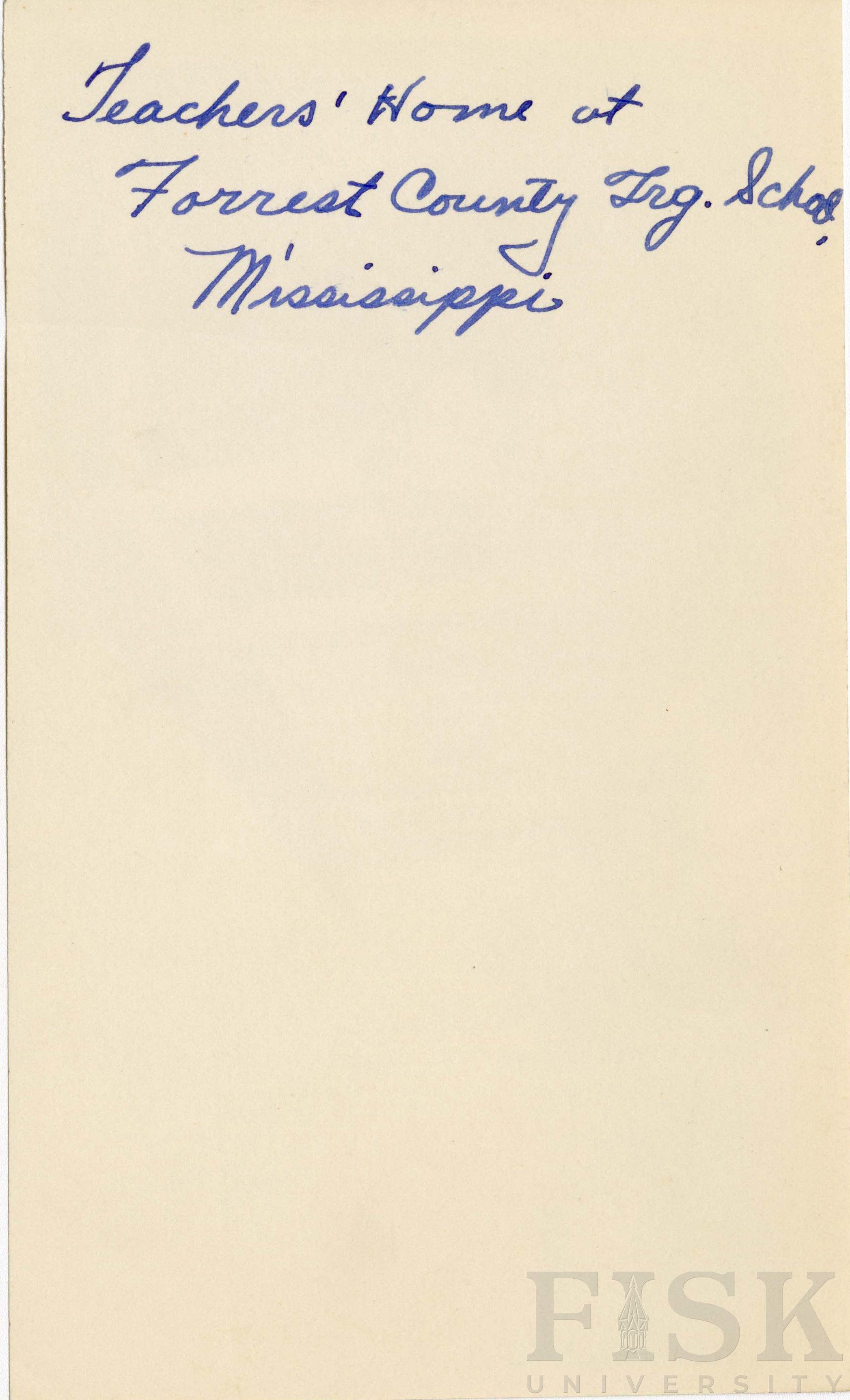 - Photo shows people outside of the teacher's home at Forrest County Training School in Forrest County, Mississippi