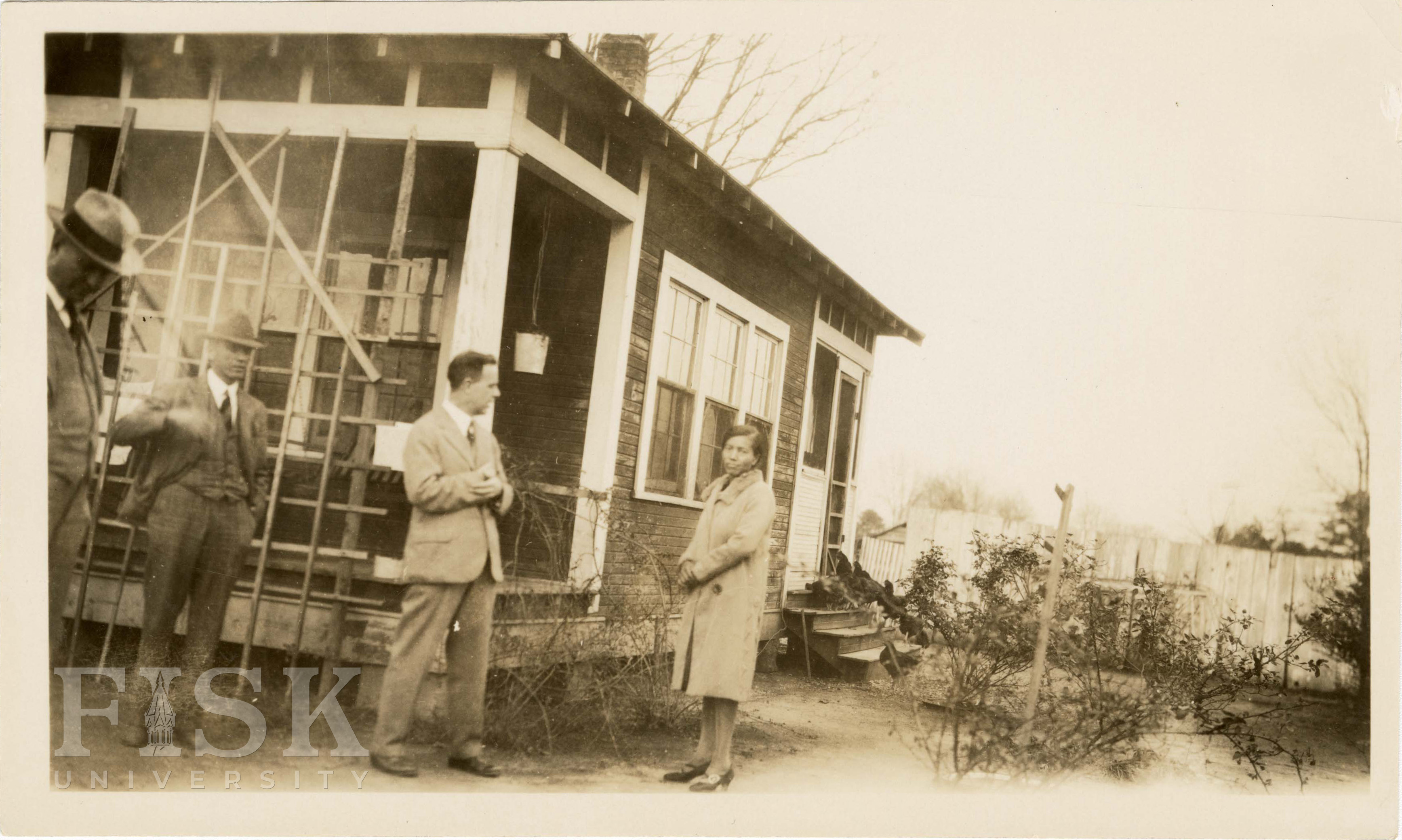 Photo shows people outside of the teacher's home at Forrest County Training School in Forrest County, Mississippi