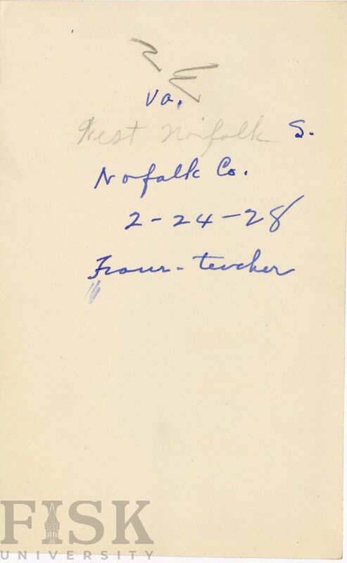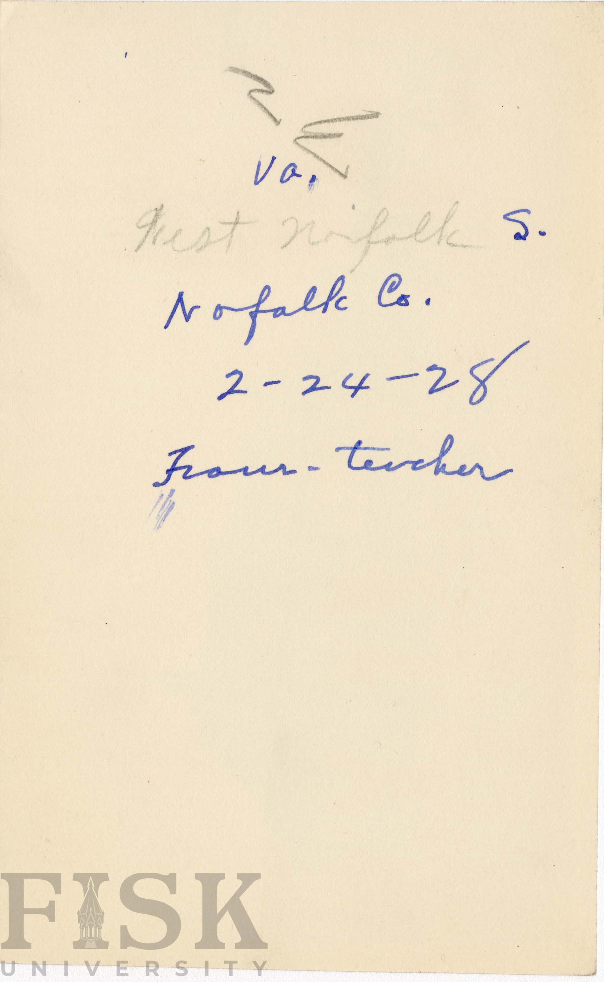 - Photo shows the rear view of West Norfolk school in Norfolk, Virginia. A note on the back says, "West Norfolk S. Norfolk County 2-24-28 Four-teacher."