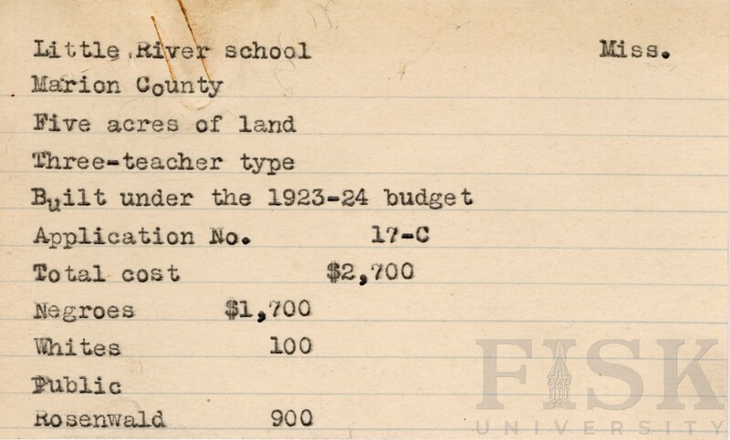 - Photo of Fund Card of Little River School in Marion County, Mississippi