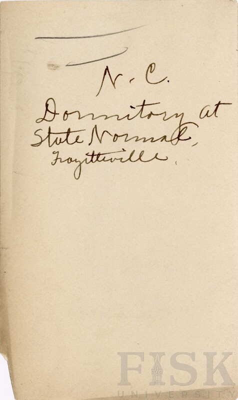- Photos of dormitory at Fayetteville Normal School in Cumberland County, North Carolina. A handwritten note on the back says, "N.C. Dormitory at State Normal, Fayetteville."