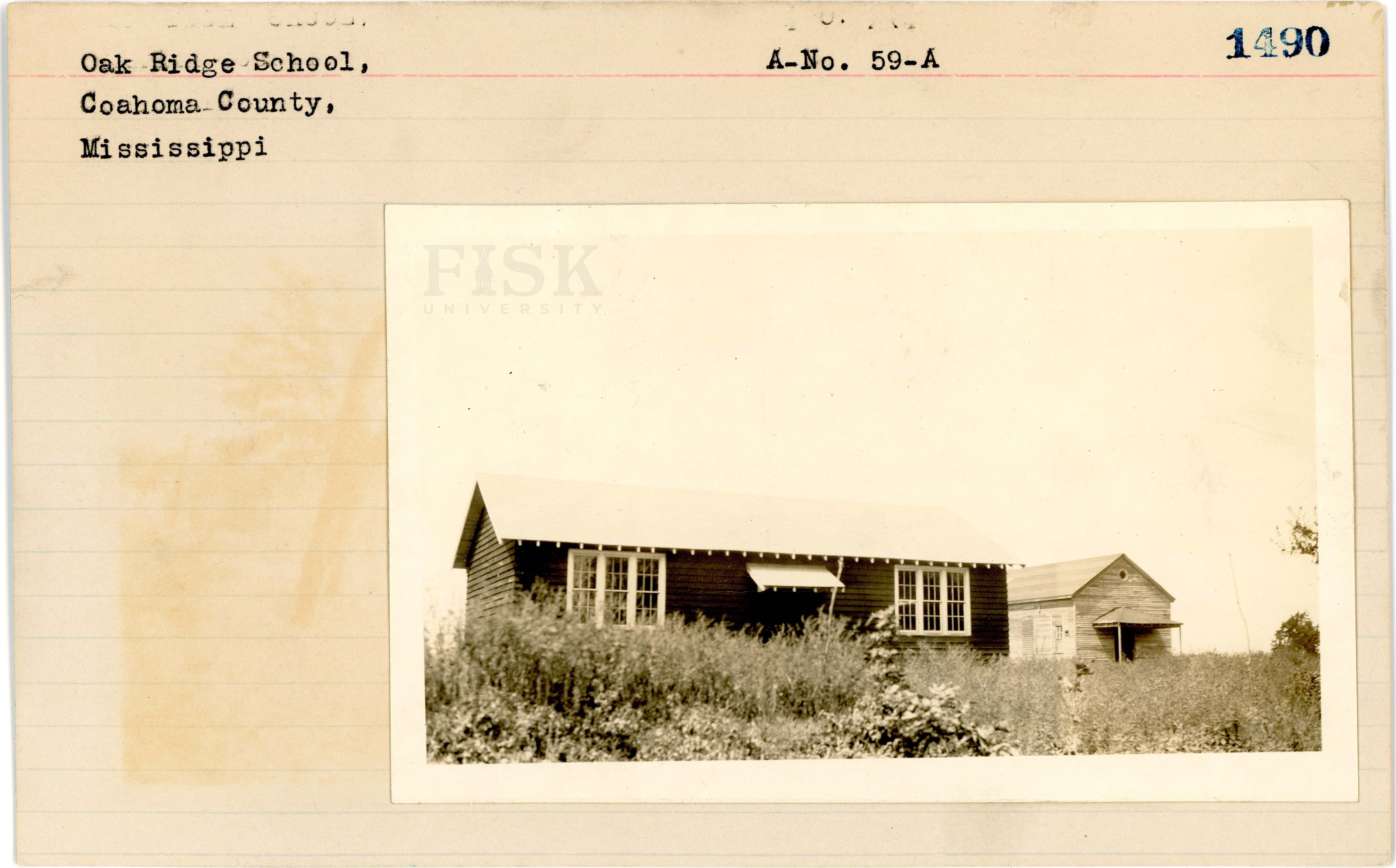 - Photo of Oak Ridge School in Coahoma County, Mississippi