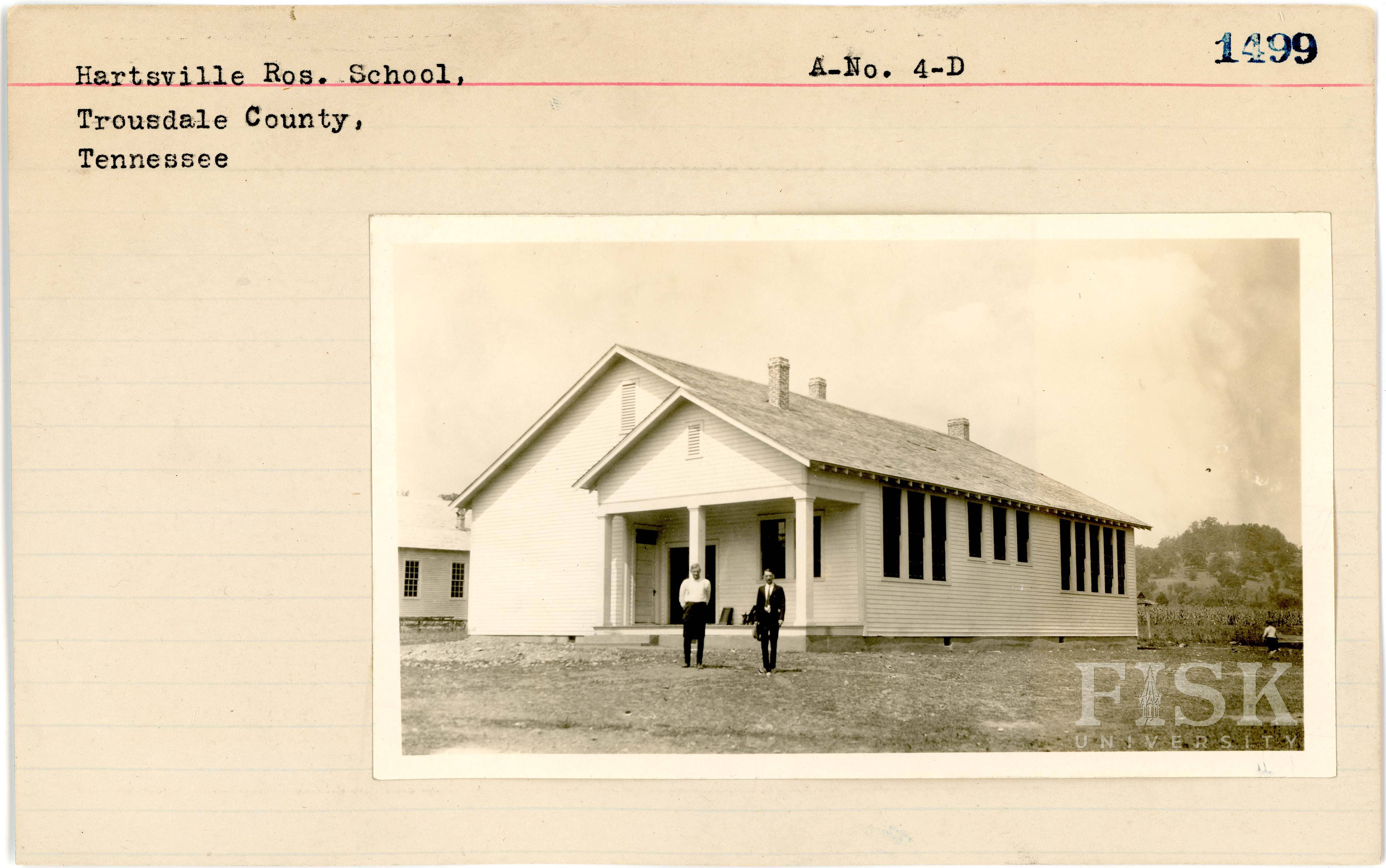 - Photo of Hartsville Rosenwald School in Trousdale County, Tennessee