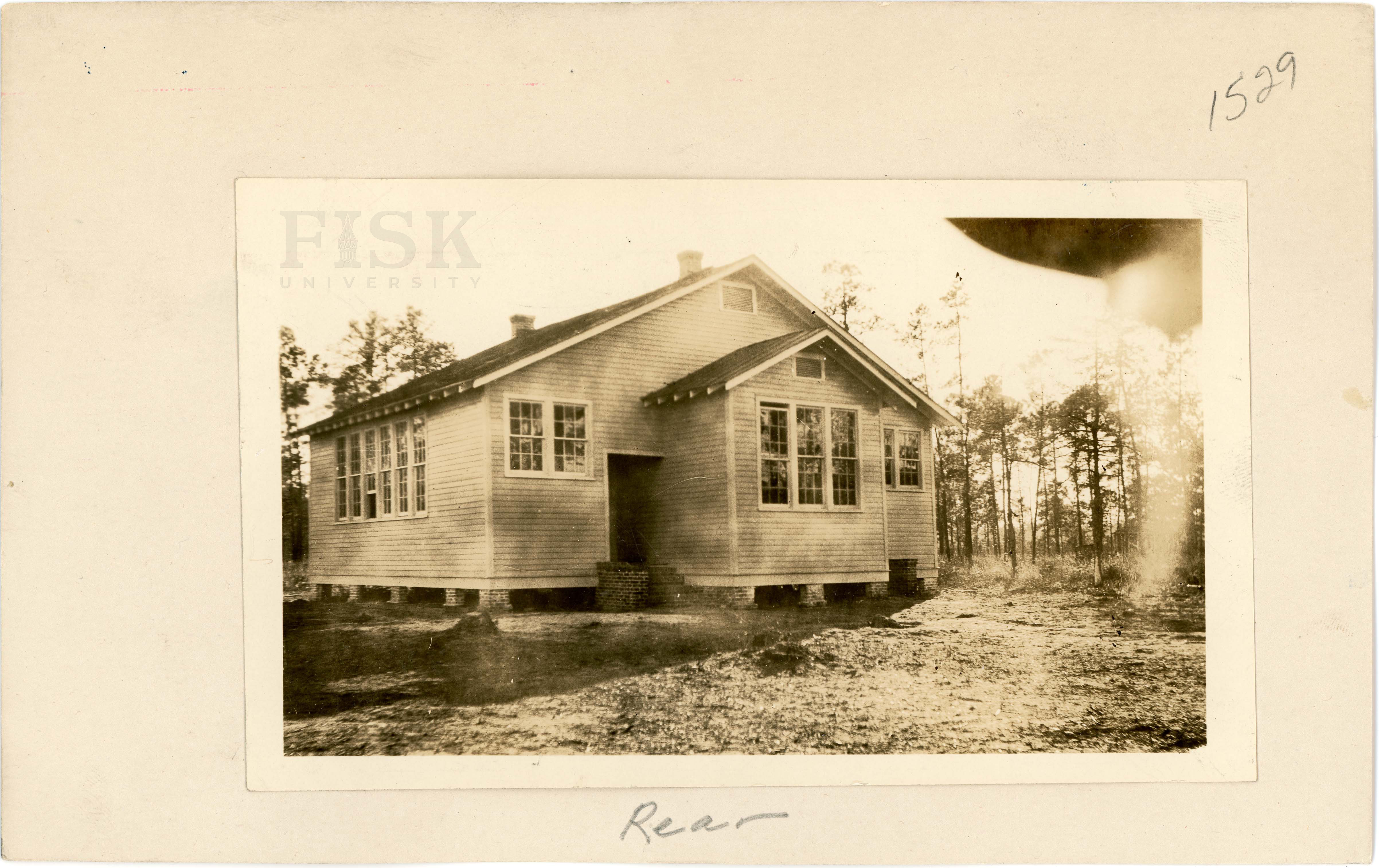 - Photos of St. Stevens School in Berkeley County, South Carolina with a note on the front of the school card that says, "Front" and a note on the back that says, "Rear"