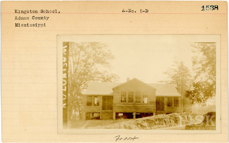 - Photos of Kingston School in Adams County, Mississippi with a note on the front of the school card that says, "Front" and a note on the back that says, "Rear"