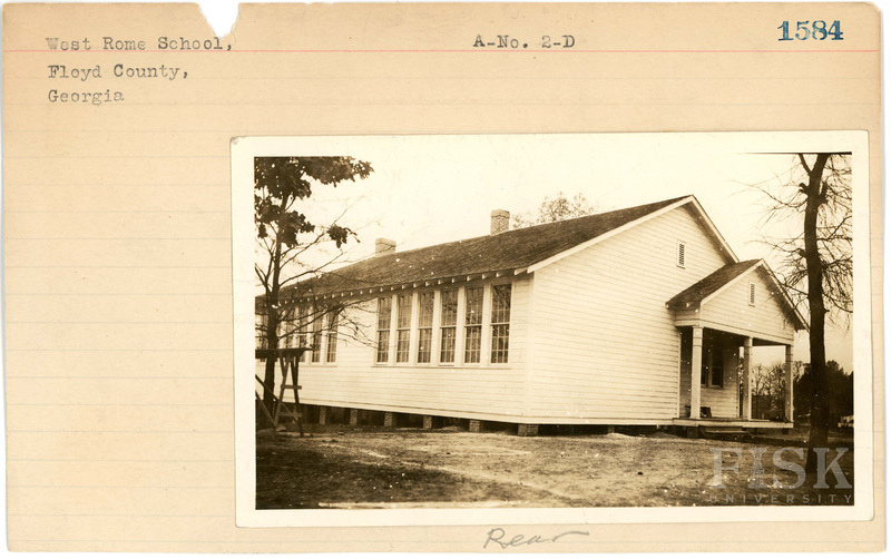 - Photos of West Rome School in Floyd County, Georgia with a note on the front of the school card that says, "Rear" and a note on the back that says, "Front"