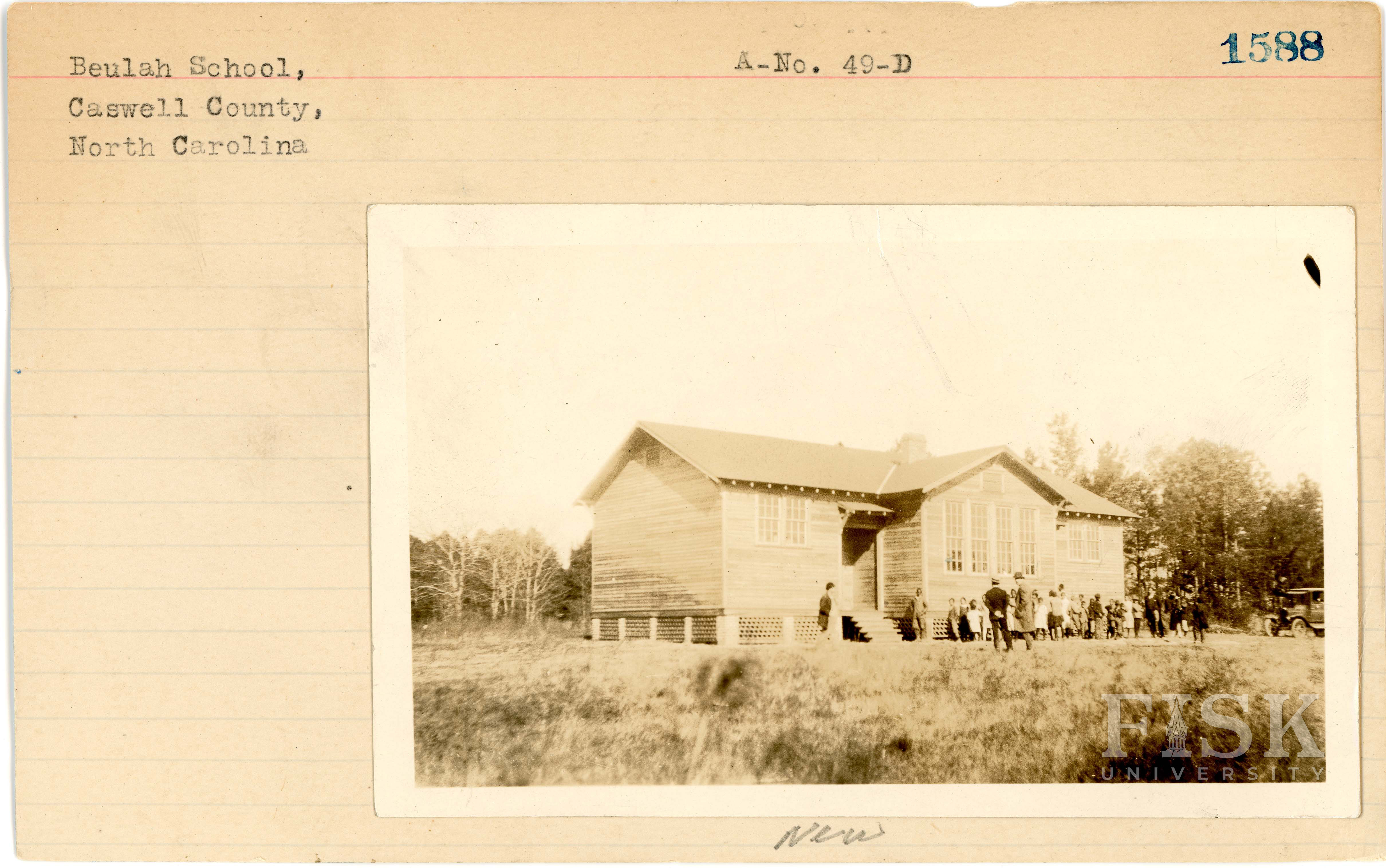 - Photos of Beulah School in Caswell County, North Carolina with a note on the front of the school card that says, "New" and a note on the back that says, "Old"