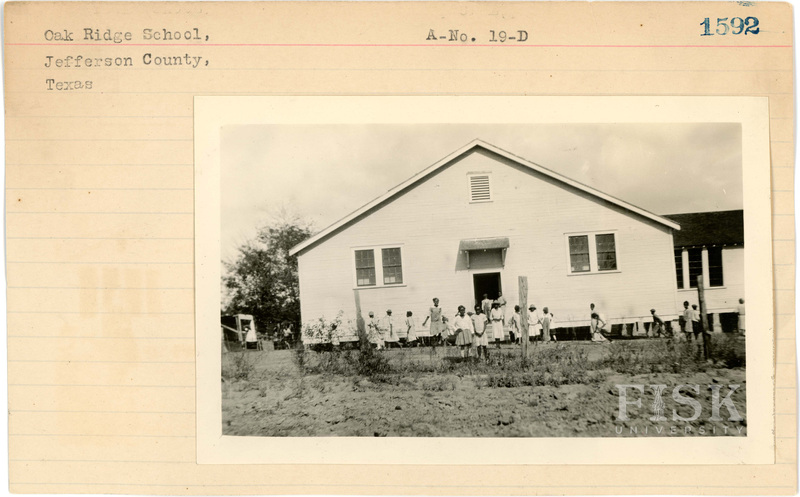 - Photo of students at Oak Ridge School in Jefferson County, Texas on the front of the school card; photo of Oak Ridge School in Jefferson County, Texas on the back