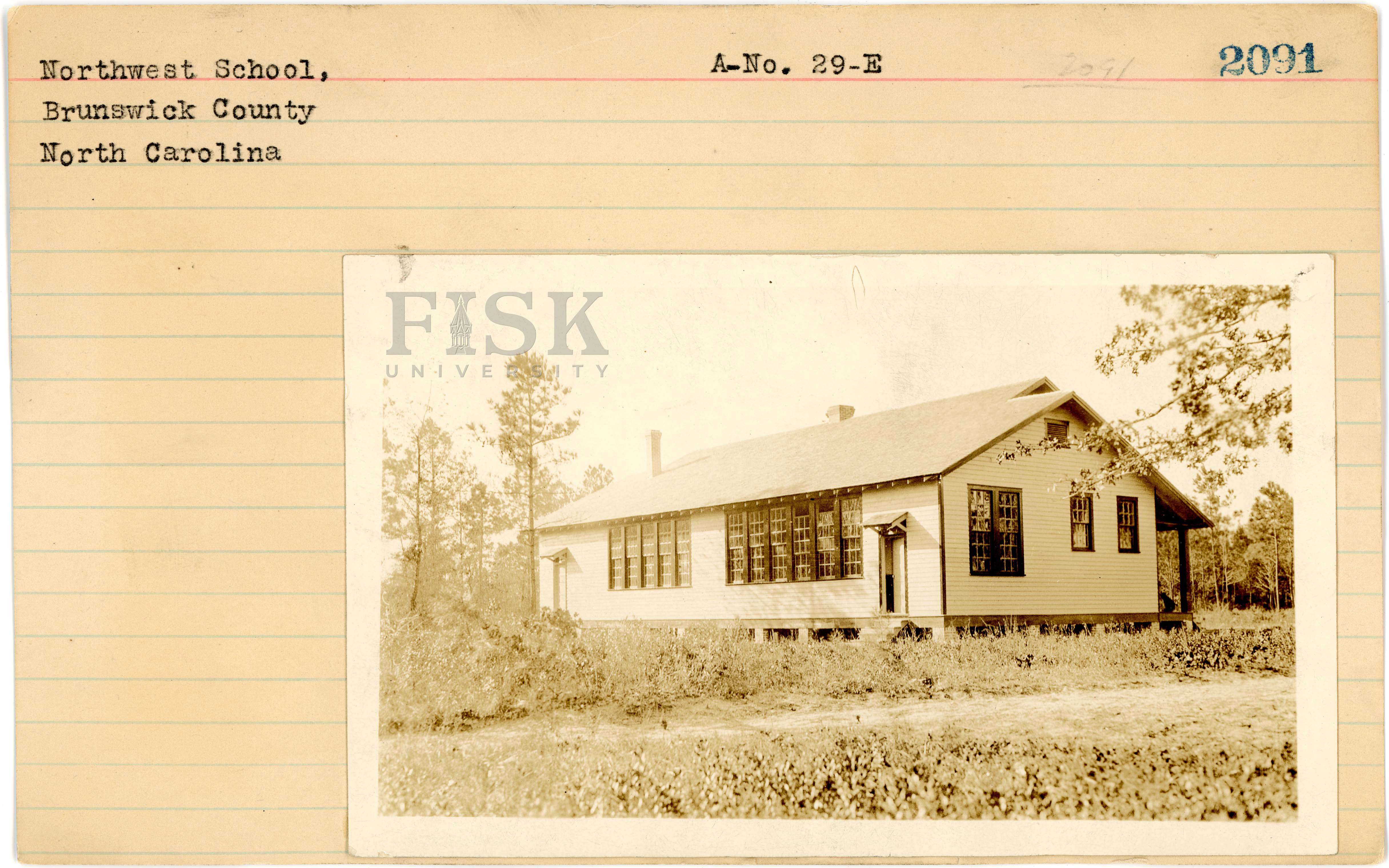 - Photo of Northwest School in Brunswick County, North Carolina on the front of the school card; photo of students at Northwest School in Brunswick County, North Carolina on the back