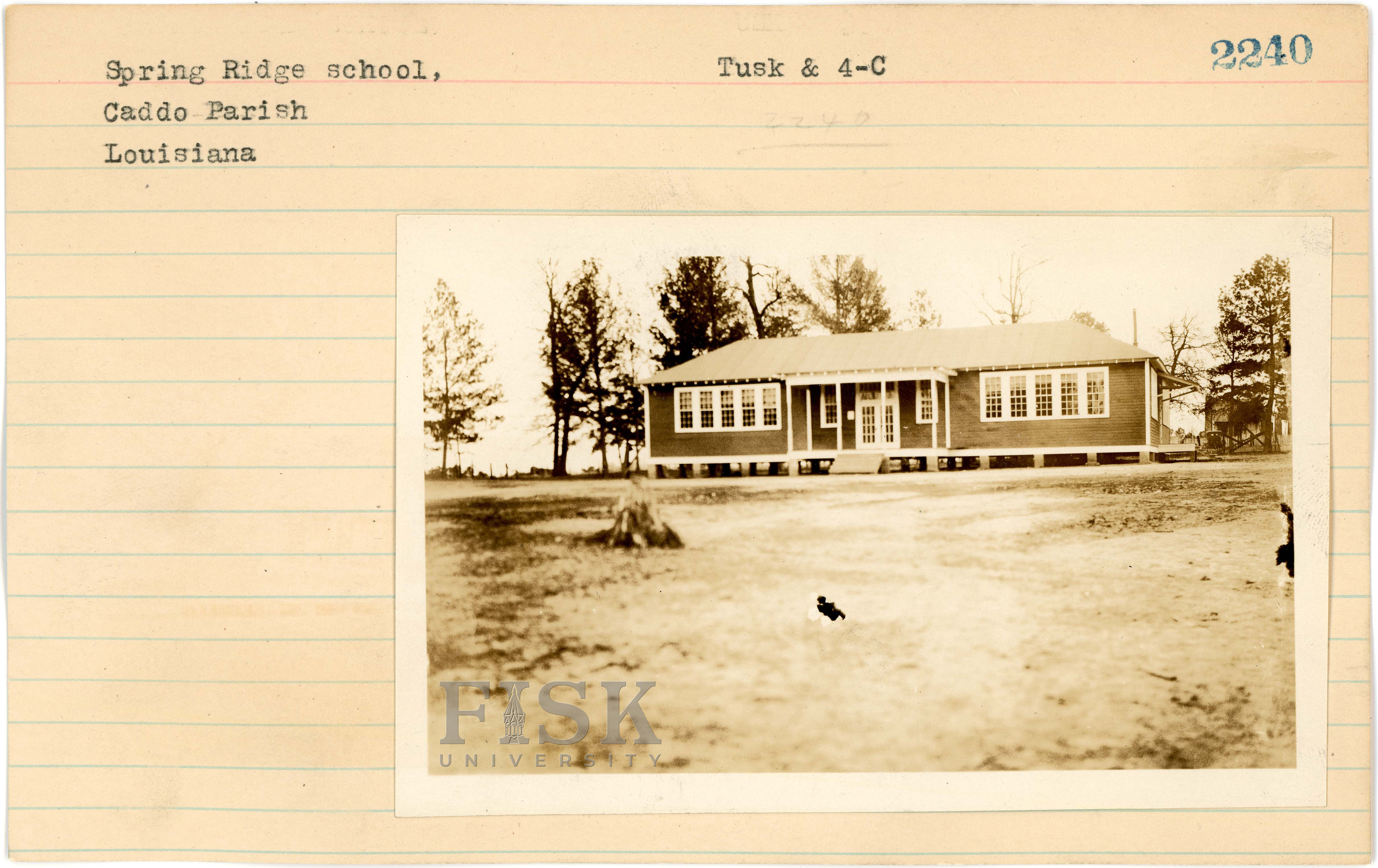- Photos of Spring Ridge School in Caddo Parish, Louisiana with a note on the front of the school card that says, "Tusk"