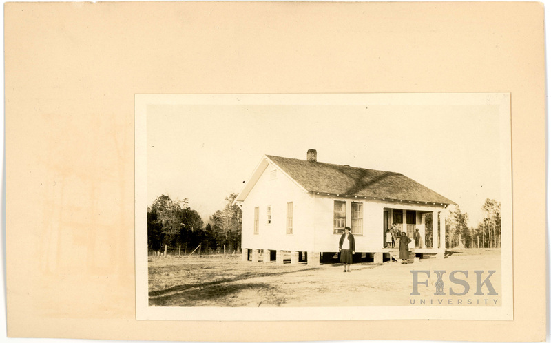 Photos of Fellowship School in Claiborne Parish, Louisiana with notes on the front of the school card that say, "Tusk" and "School"