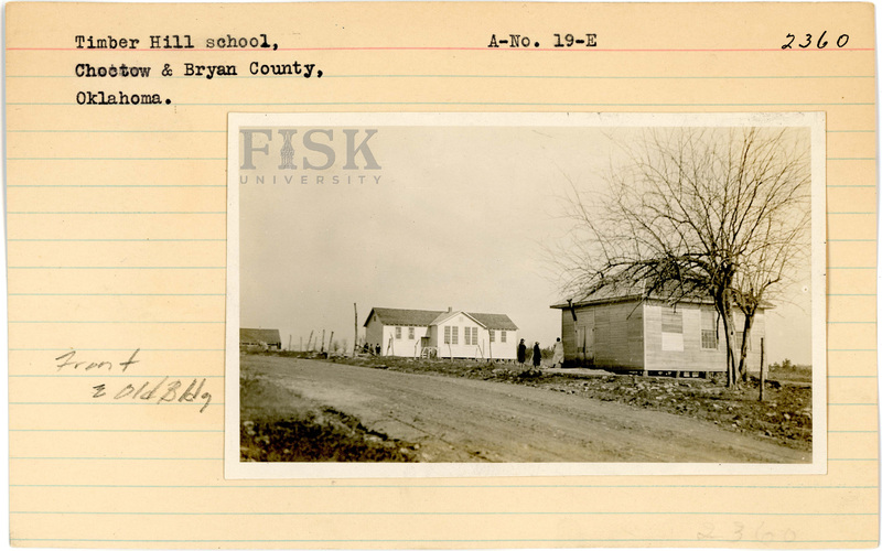 - Photos of Timber Hill School in Choctaw County and Bryan County, Oklahoma with a note on the front of the school card that says, "Front & Old Bldg" and a note on the back that says, "Side & Rear Views of New Bldg"