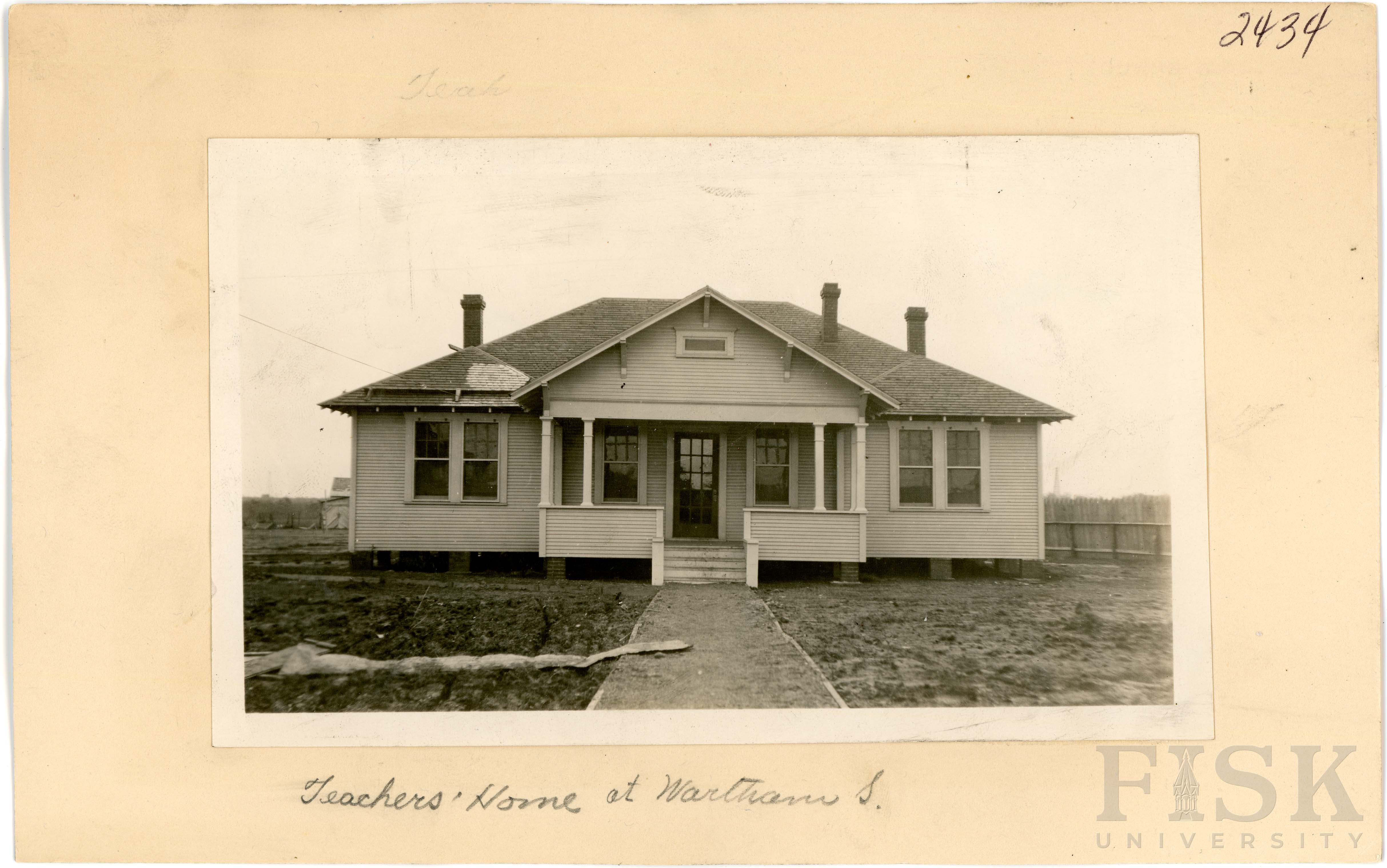 - Photos of the teacher's home and shop at Wortham School in Freestone County, Texas with a note on the back of the card that says, "Teacher's Home at Wortham School's"