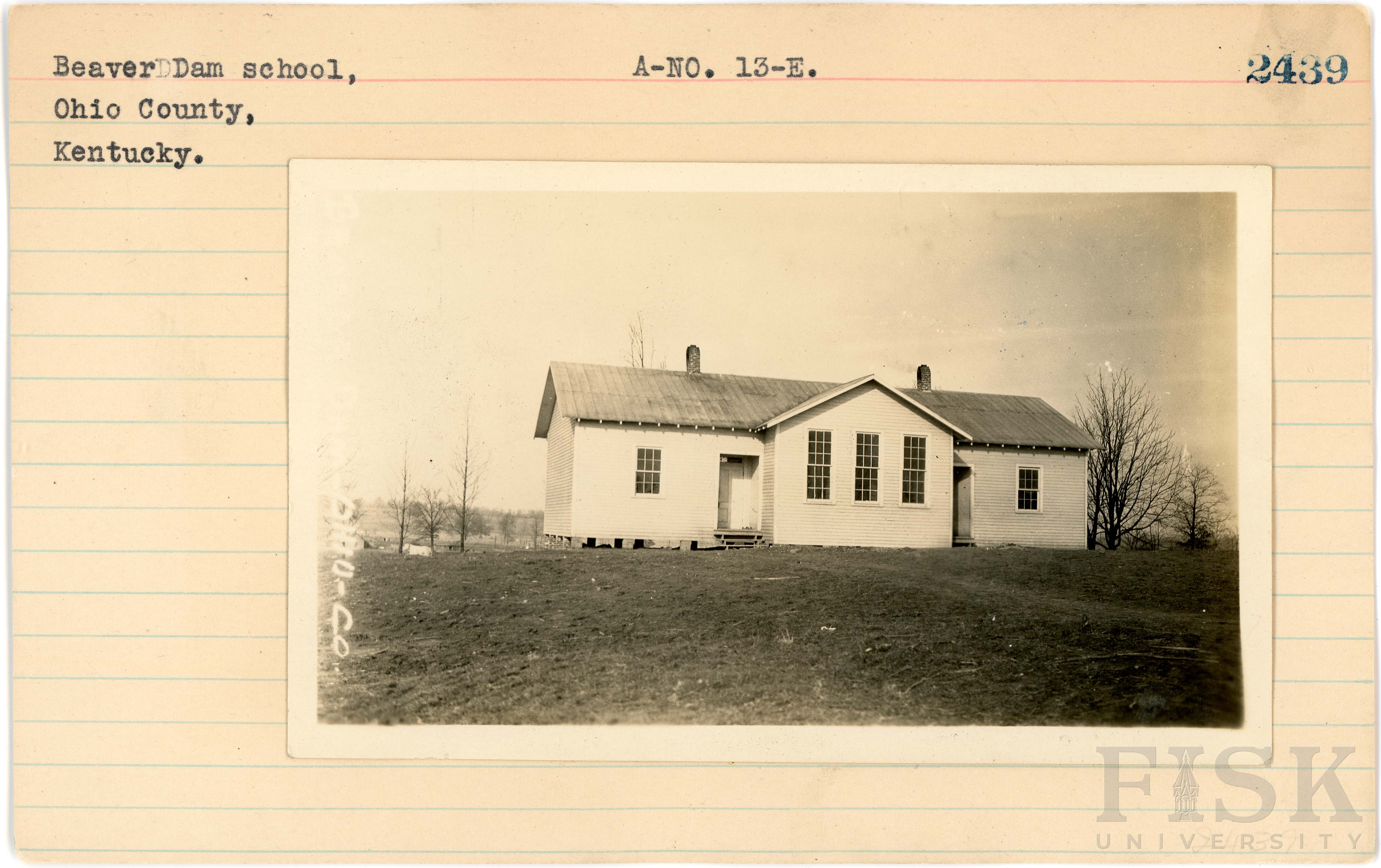 - Photo of Beaver Dam School in Ohio County, Kentucky on the front of the school card; photo of Beaver Dam School in Ohio County, Kentucky on the back of the card wih a inscription that says, "Beaver Dam - 1926"