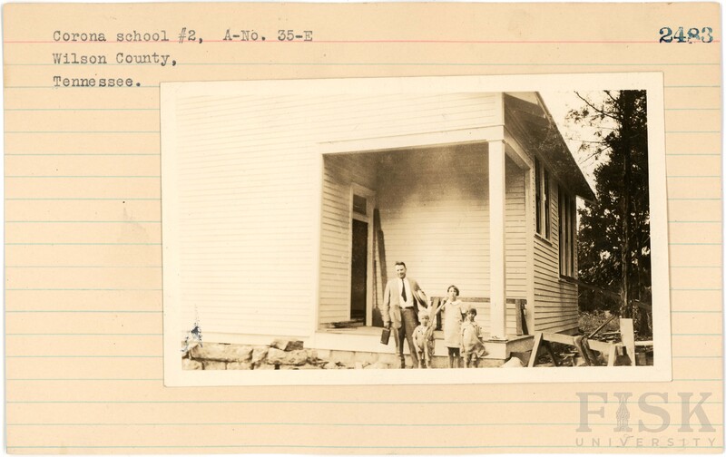 - Photo of a man and three children at Corona School No. 2 in Wilson County, Tennessee on the front of the school card; photo of three children at the school house at Corona School No. 2 in Wilson County, Tennessee on the back of the card