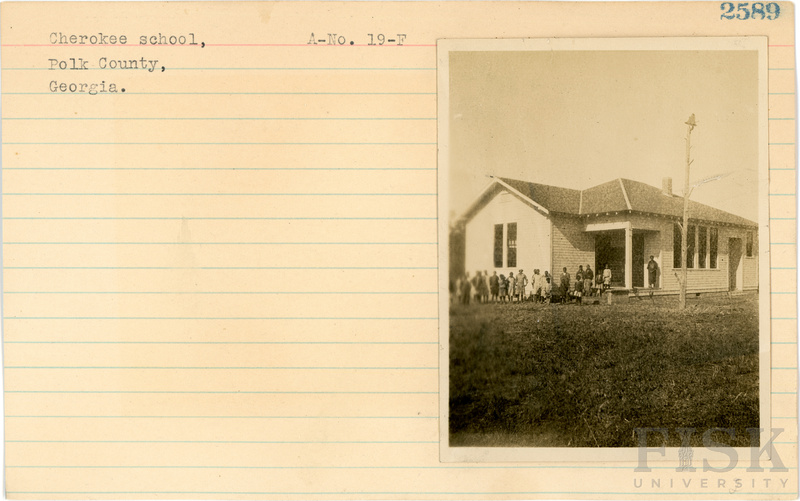 - Photo of pupils at Cherokee School in Polk County, Georgia on the front of the school card; photo of Cherokee School in Polk County, Georgia on the back of the card
