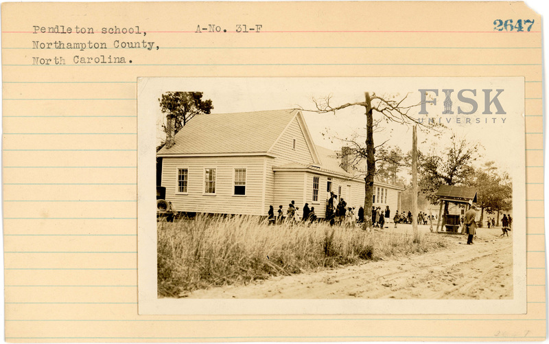 - Photo of students at Pendleton School in Northampton County, North Carolina on the front of the school card; photo of Pendleton School in Northampton County, North Carolina on the back