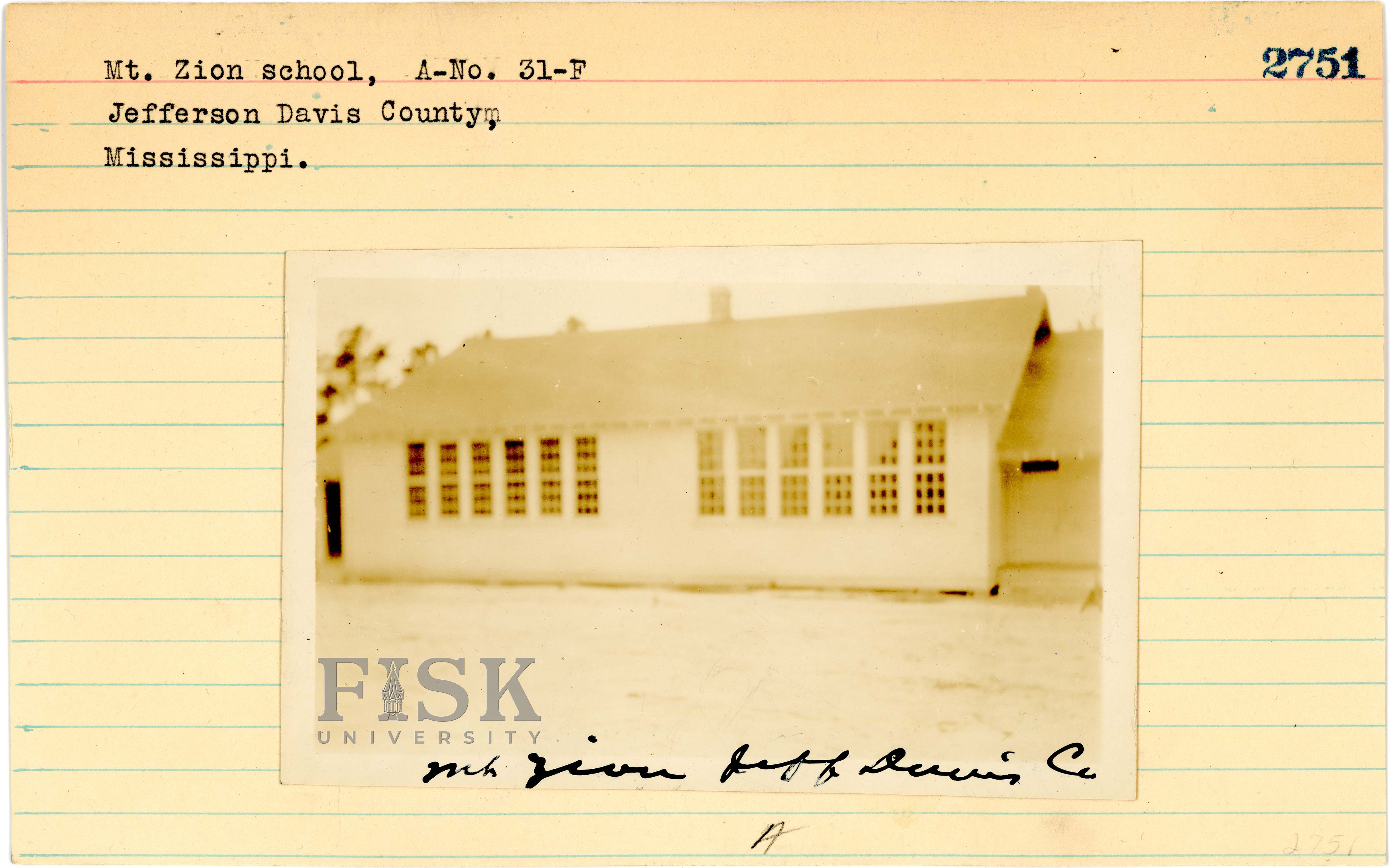 - Photos of Mt. Zion School in Jefferson Davis County, Mississippi with inscriptions that say "Mt. Zion Jeff Davis Co."
