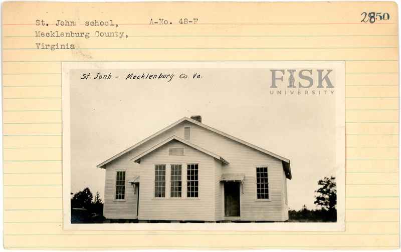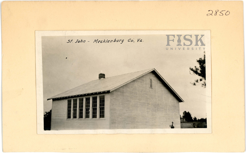 - Photos of St. John School in Mecklenburg County, Virginia with inscriptions that says "St. John - Mecklenburg Co., Va."