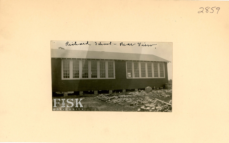 Photo of Richards School in Pike County, Mississippi on the front of the school card with an inscription that says, "Richard School - Front"; photo of Richards School in Pike County, Mississippi on the back with an inscription that says "Richard School - Rear View"