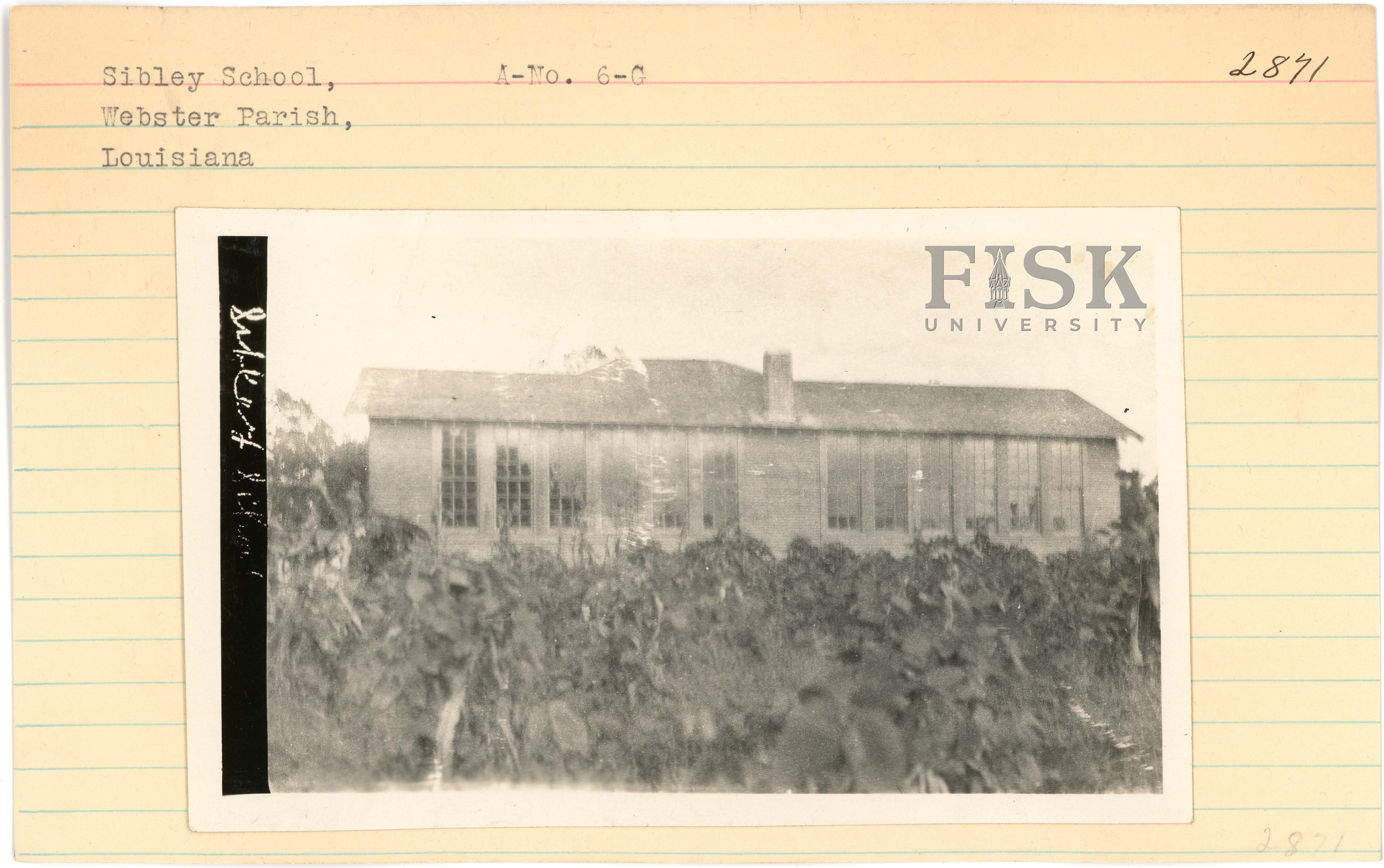 - Photo of Sibley School in Webster Parish, Louisiana with an inscription that says, "Sibley School"