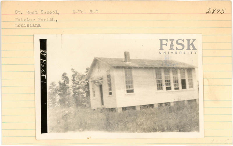 - Photos of St. Rest School in Webster Parish, Louisiana with inscriptions that say, "St. Rest"