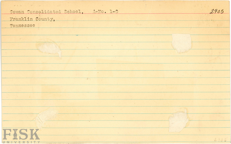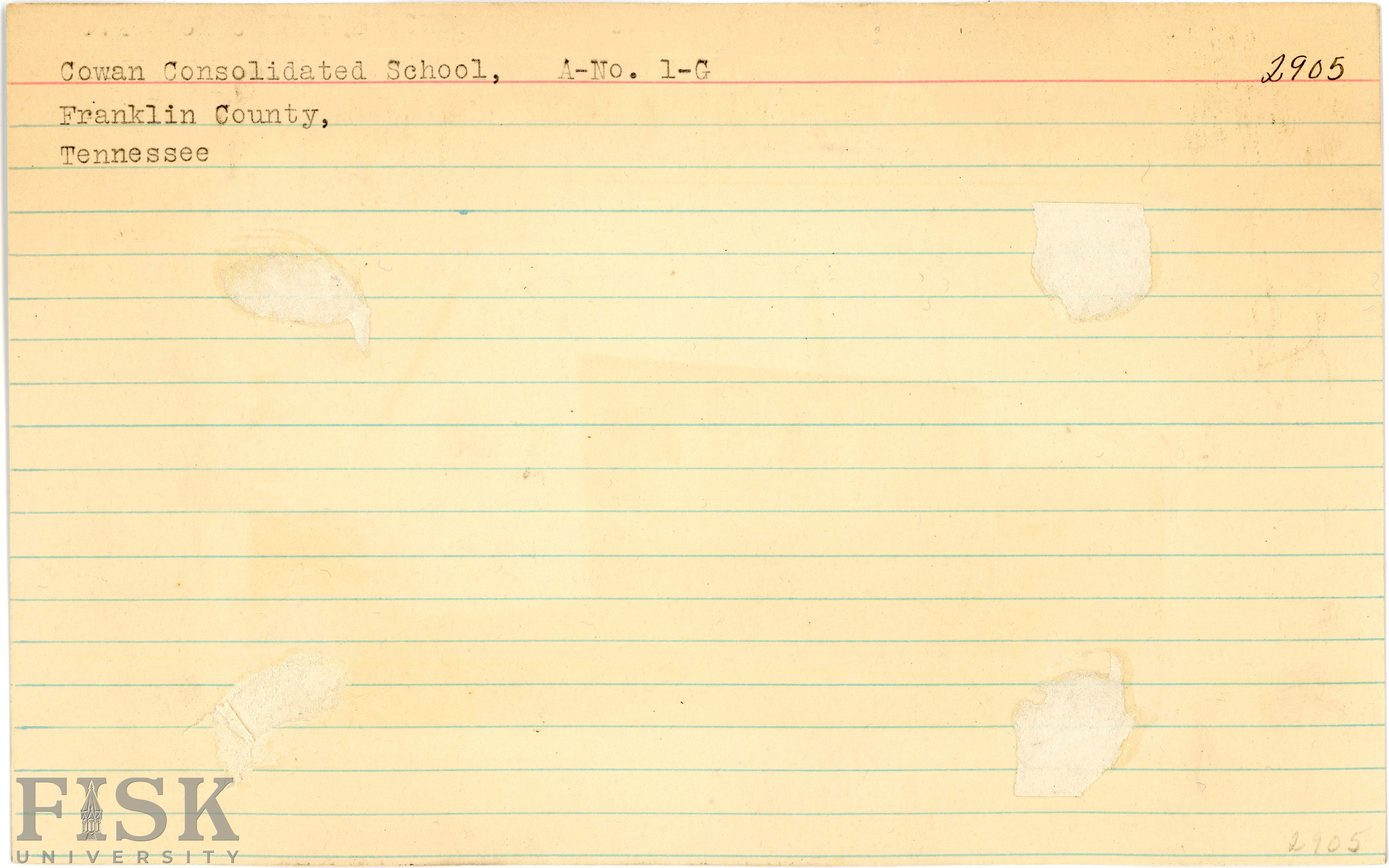 - School photo card of Cowan Consolidated School in Franklin County, Tennessee with no photo attached