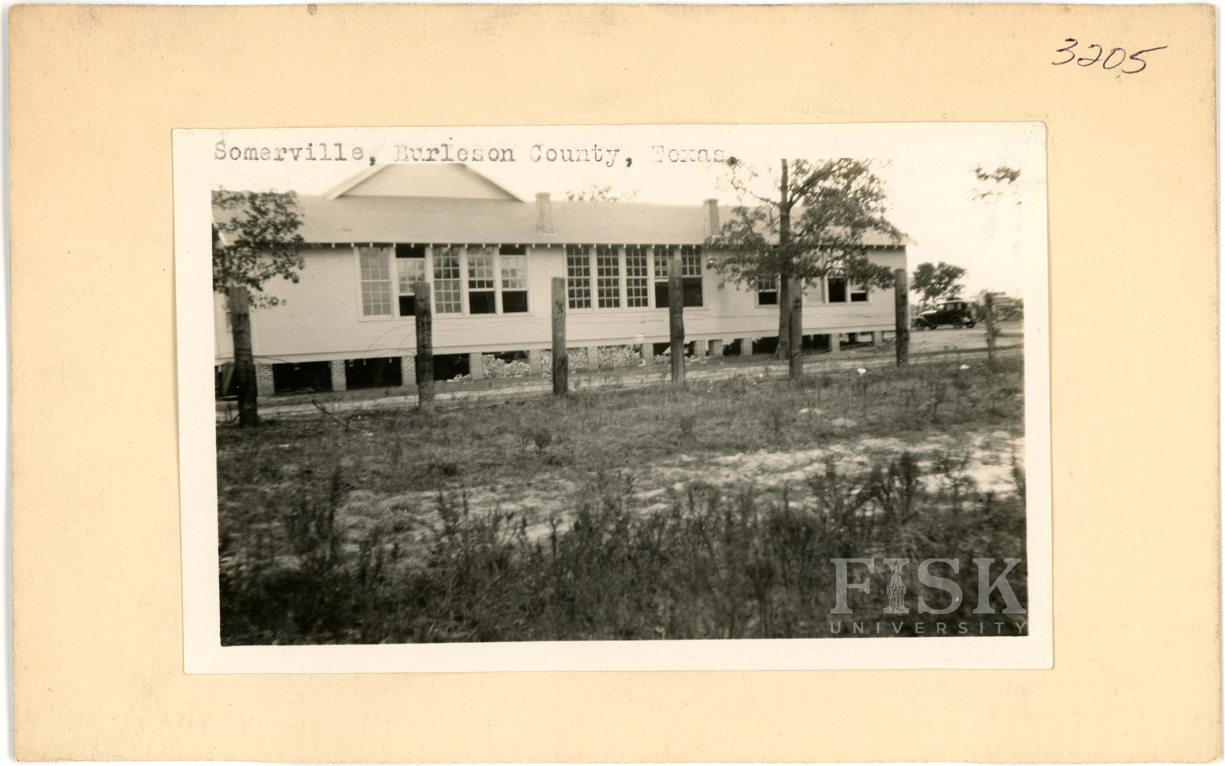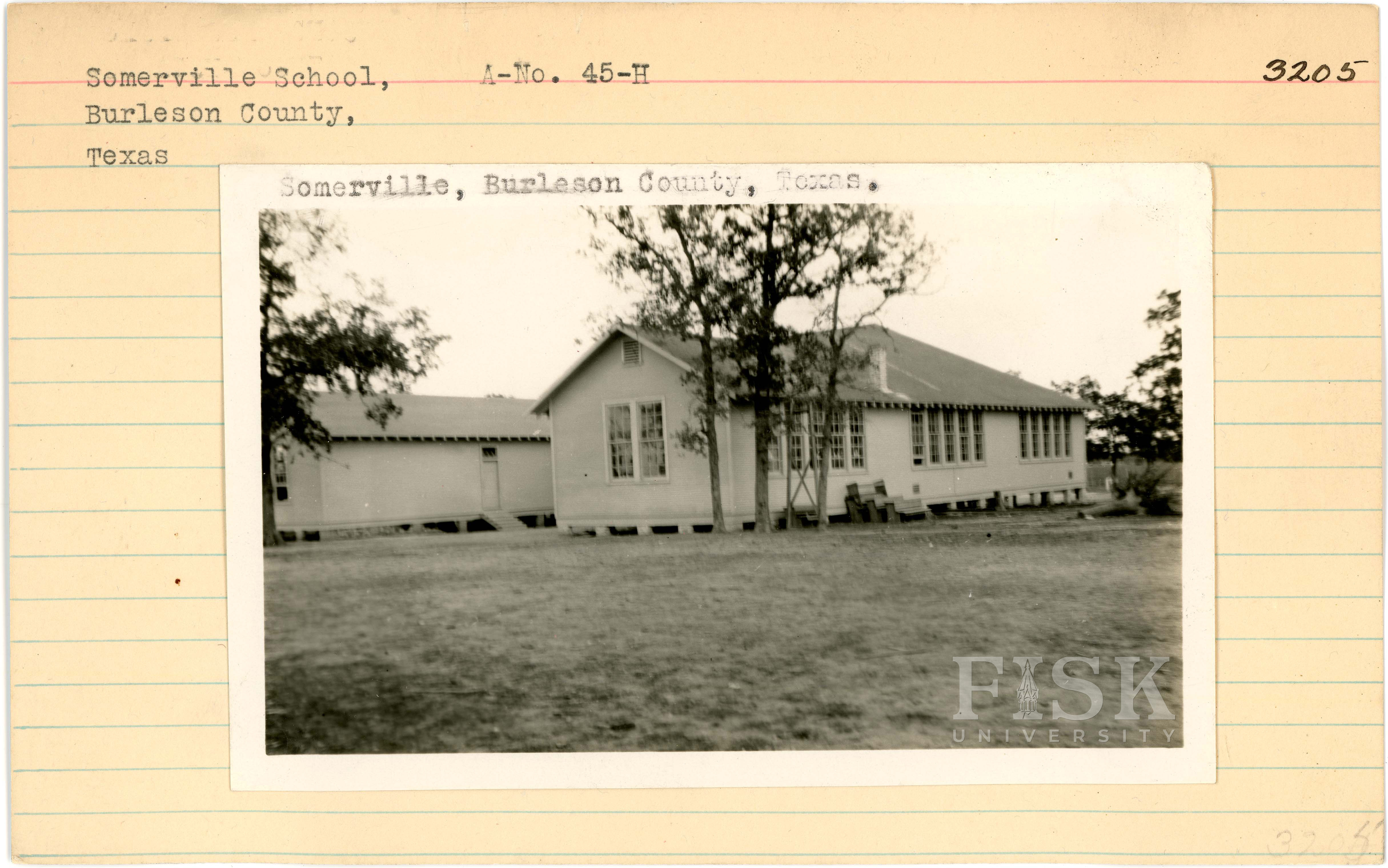 - Photos of Somerville School in Burleson County, Texas with inscriptions that say, "Somerville, Burleson County, Texas"