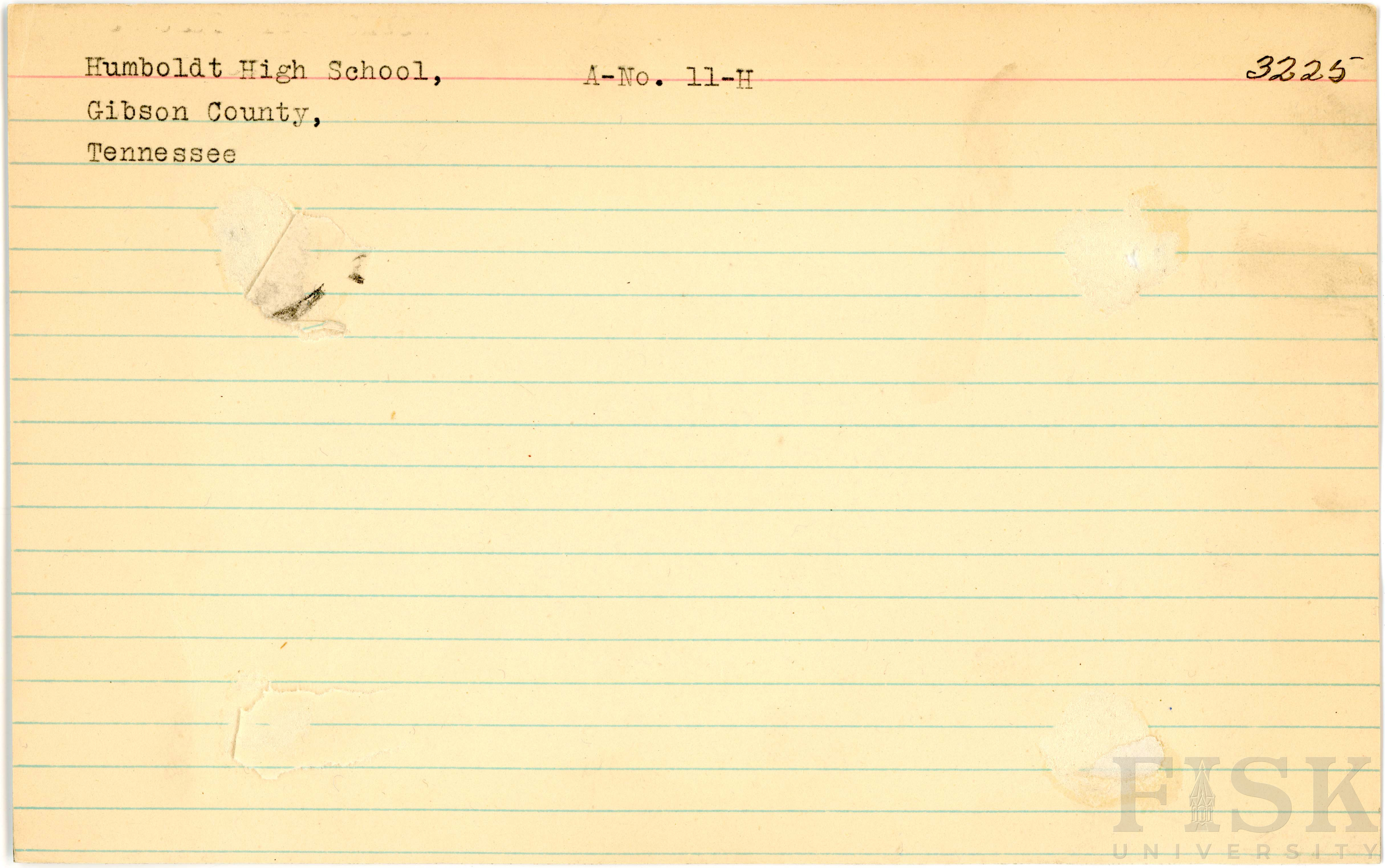 - School photo card for Humboldt High School in Gibson County, Tennessee with no photo attached
