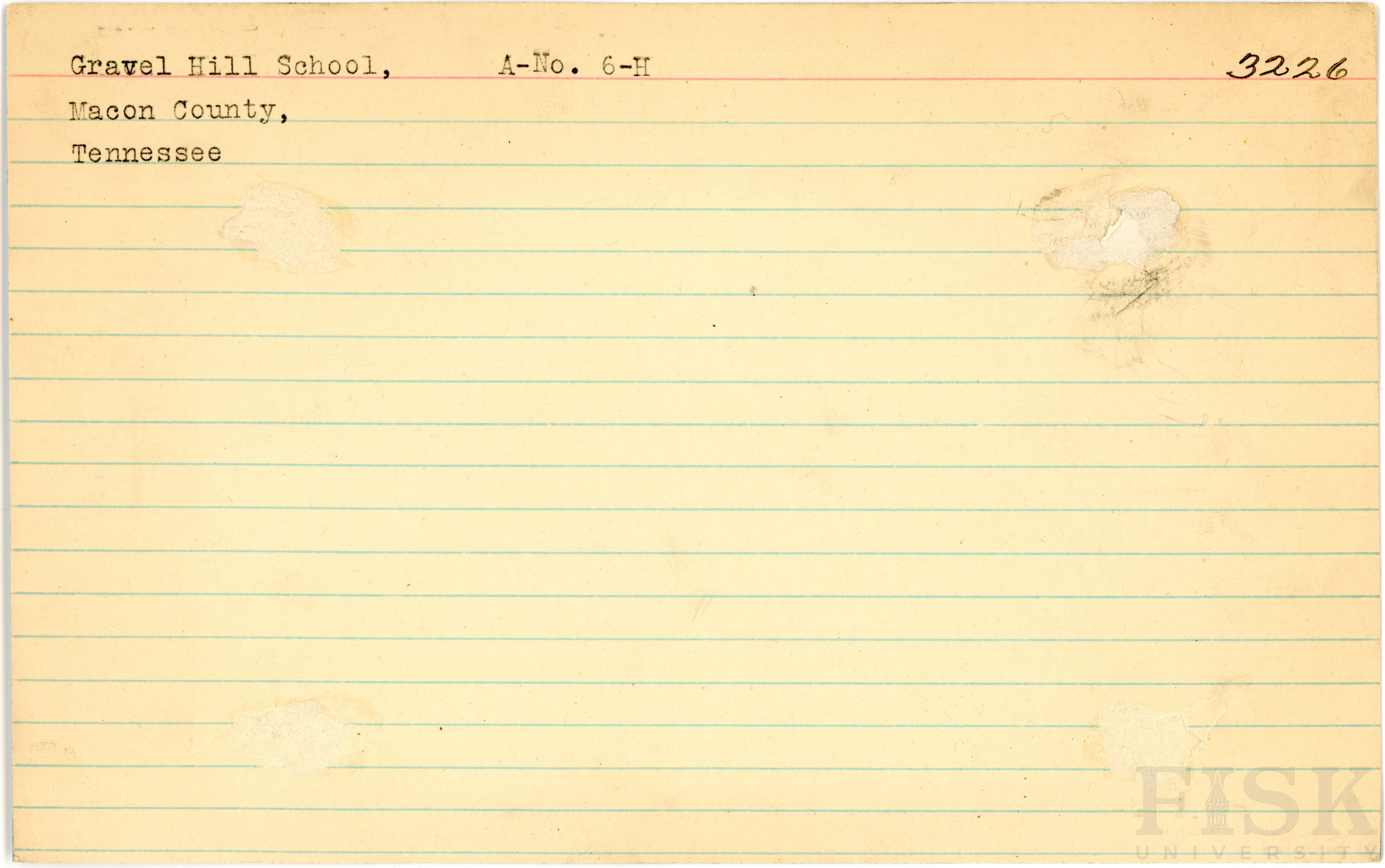 - School photo card for Gravel Hill School in Macon County, Tennessee with no photo attached
