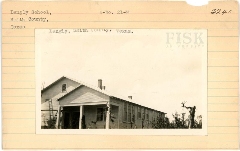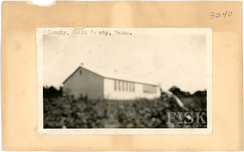- Photos of Langly School in Smith County, Texas with inscriptions that say, "Langly, Smith County, Texas"