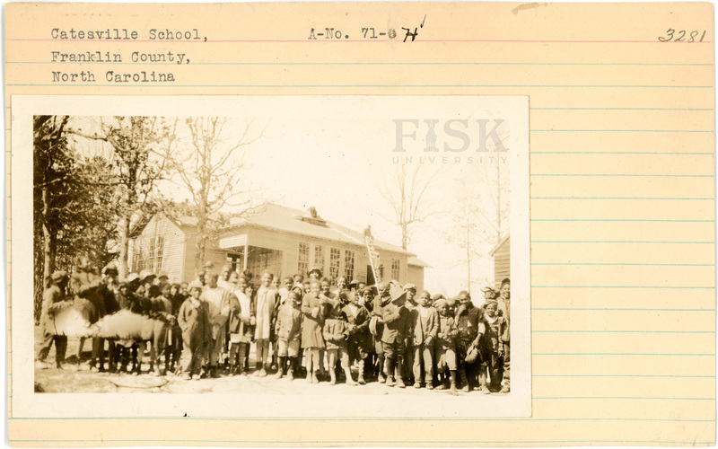 - Photo of pupils at Catesville School in Franklin County, North Carolina on the front of the school card; photo of the interior of Catesville School in Franklin County, North Carolina on the back of the card