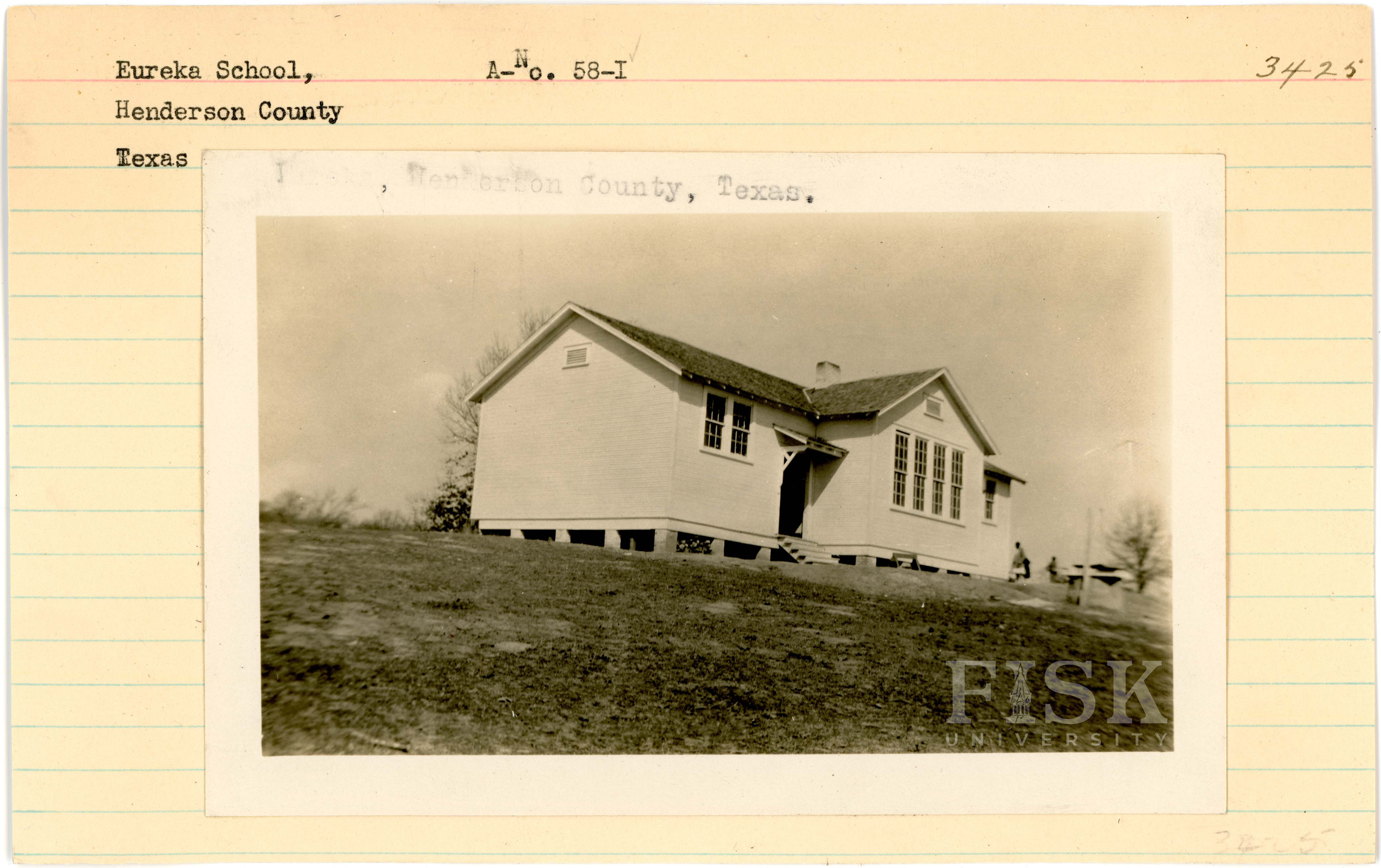 - Photos of Eureka School in Henderson County, Texas with inscriptions that say, "Eureka, Henderson County, Texas"