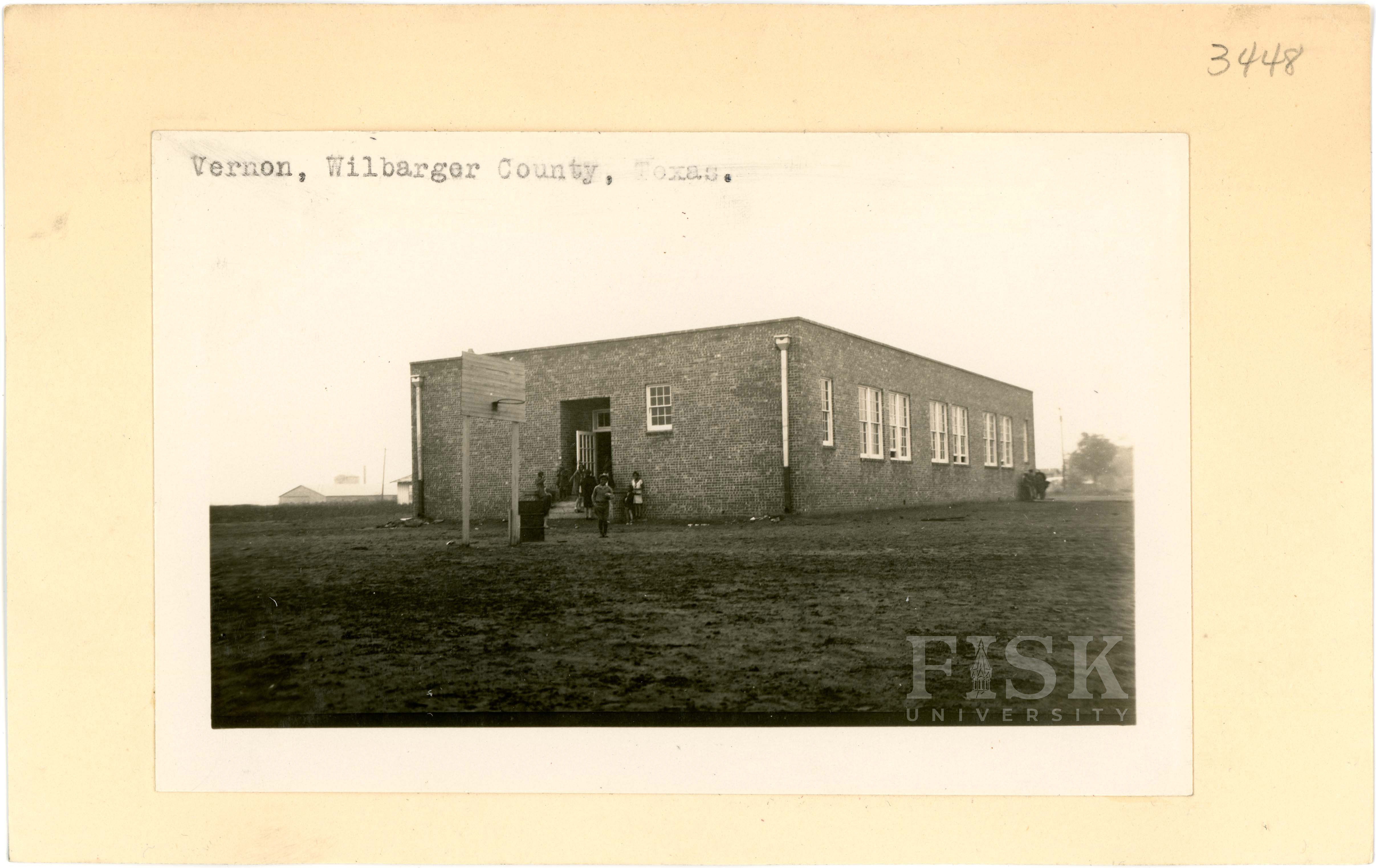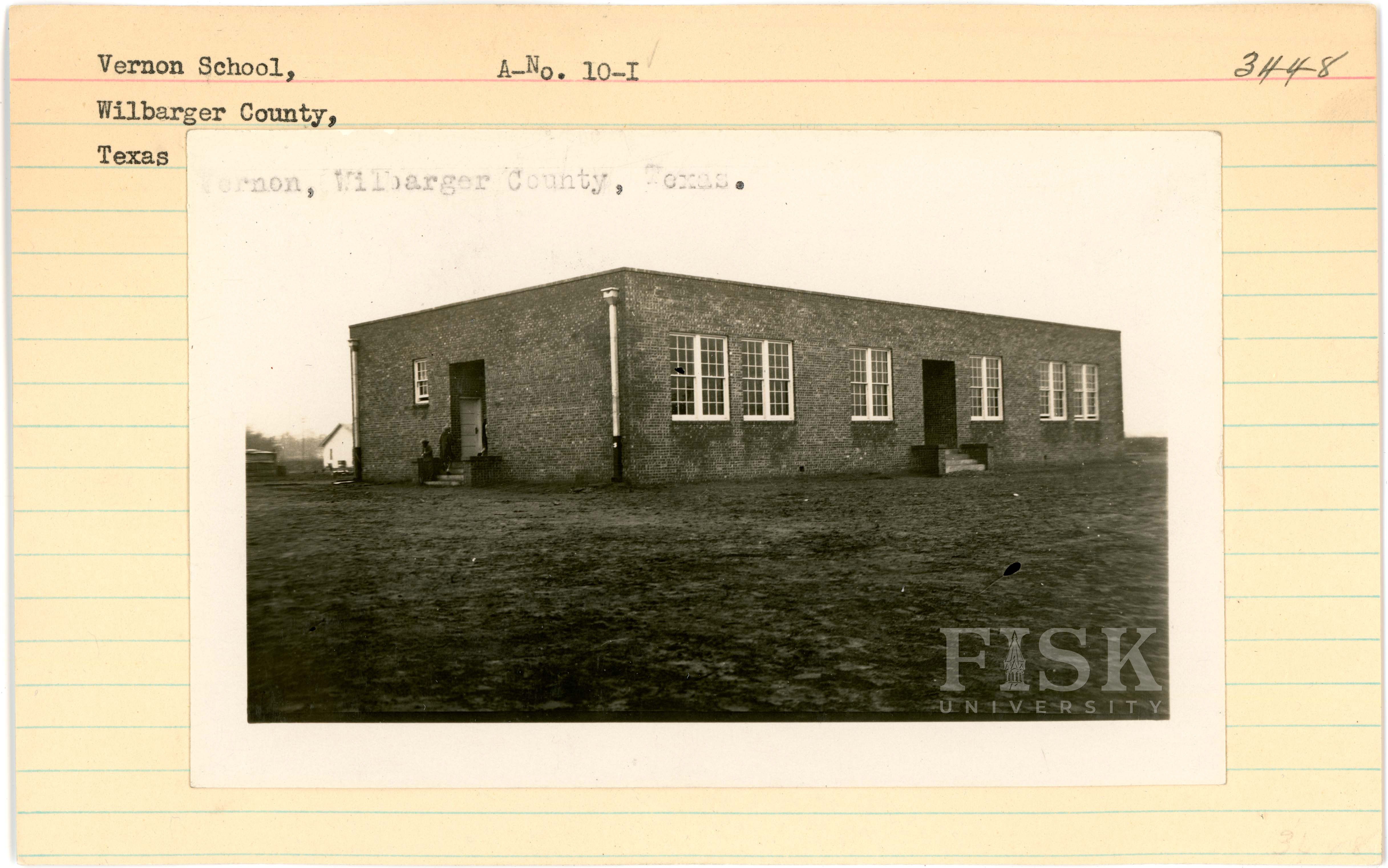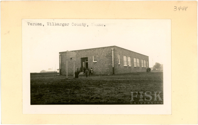 - Photos of Vernon School in Wilbarger County, Texas with inscriptions that say, "Vernon, Wilbarger County, Texas"
