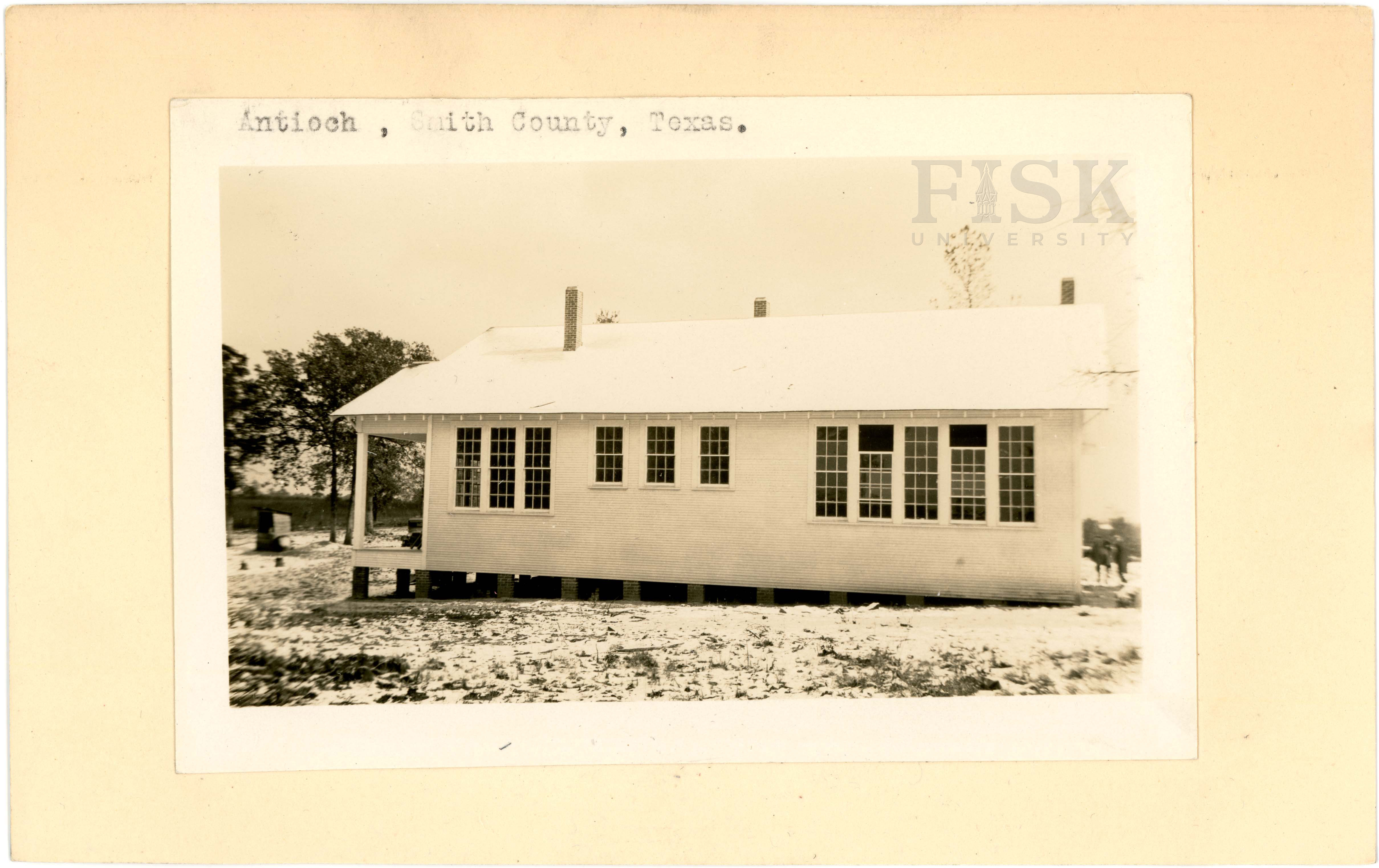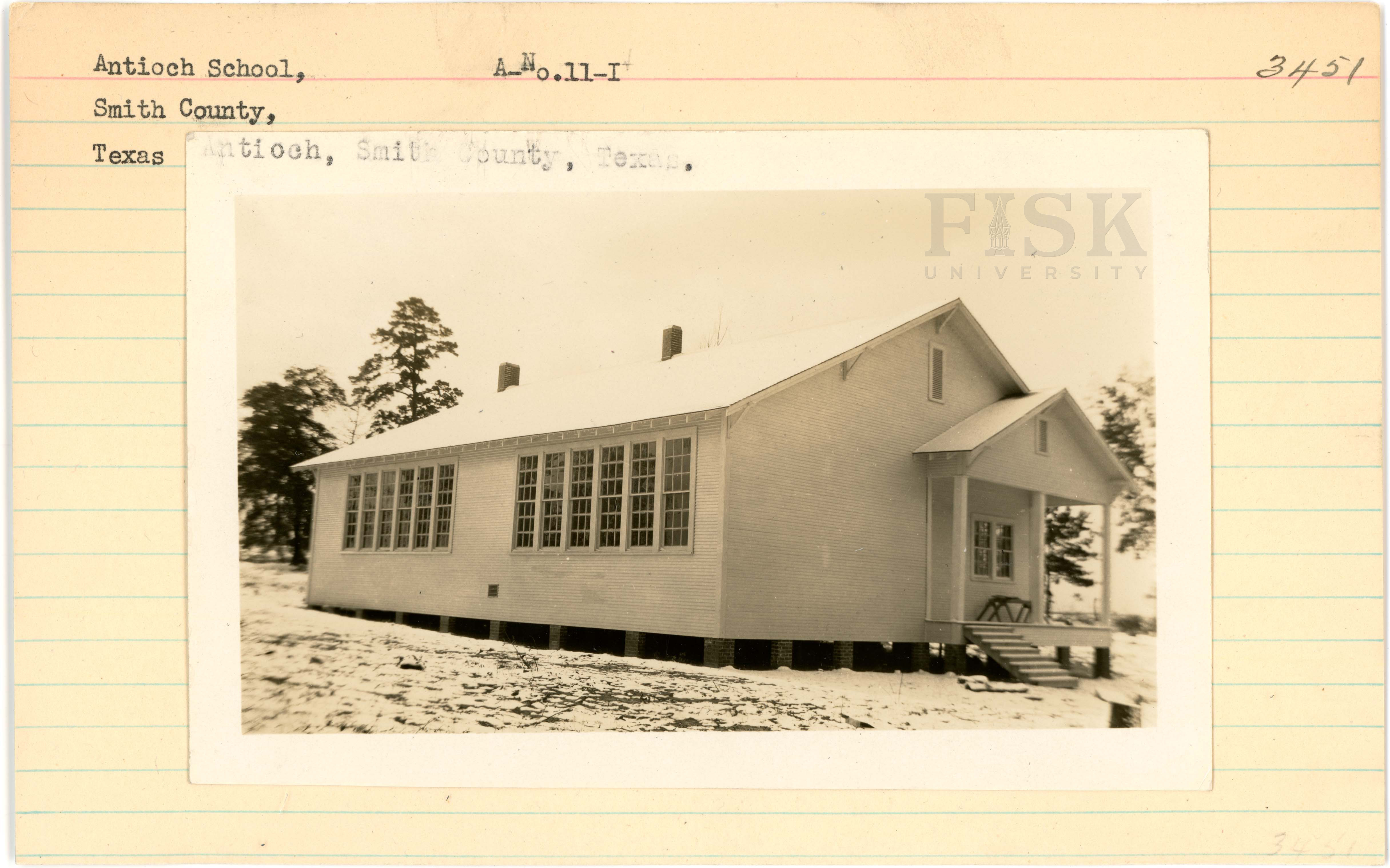 - Photos of Antioch School in Smith County, Texas with inscriptions that say, "Antioch, Smith County, Texas"